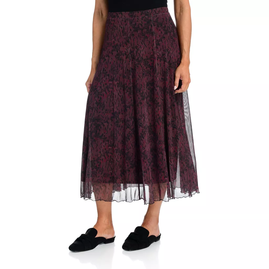 Don’t “skirt” the issue with this essential! This midi-length mesh skirt is beautifully (yet subtly!) printed with one of our exclusive in-house abstracts. Lightweight with a flattering drape and straight hemline, it’s perfect to wear with pumps, elevated heels, or boots with a blouse for an elevated, classy look. Or, take a more casual approach with sneakers, your favorite tee, and earrings. You do you in this must-have skirt for any occasion!