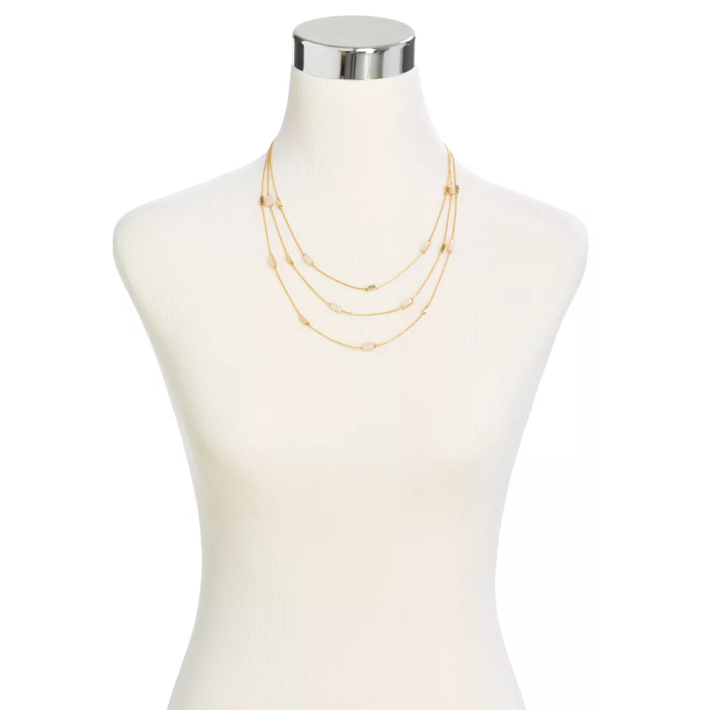 Elegantly layered, this 3-strand necklace meets in one easy-to-wear lobster claw clasp.