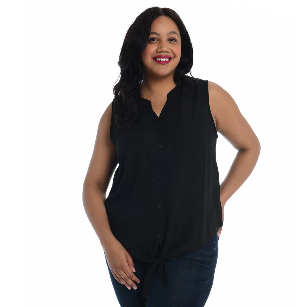 Introducing our must-have Drapey Woven Top. Crafted in 100% polyester for a luxe feel, it’s the epitome of style meets ease. Not sheer, this lightweight piece offers effortless sophistication. With a full button front, adjustable tie, and a flattering curved hem, it’s versatile and chic. Perfect layering companion, available in three exclusive prints for endless styling possibilities.