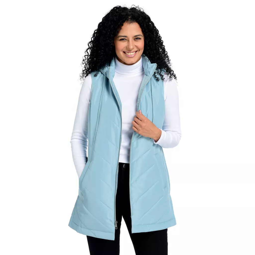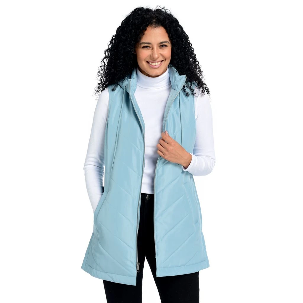 Layer up for the transitional months into fall in this quilted vest. Ensuring extra warmth with the long length and adjustable hood for chillier afternoons.