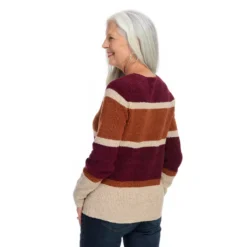 Treat your closet to a cozy pop of color! Fuzzy, stretchy fabric creates the canvas for intriguing blocks of color. Layer it with a vest for a classic look and a ponte skirt for dressier days.