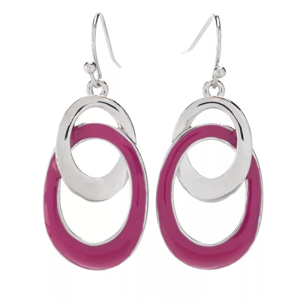 Candy cane red and white to ring in the season! These touch-of-silver earrings are perfect for the holidays or everyday wear. Matches the Multi-chain Stationed Pendant 19” Necklace (sold separately). Our jewelry is hypoallergenic and nickel free for your peace of mind.