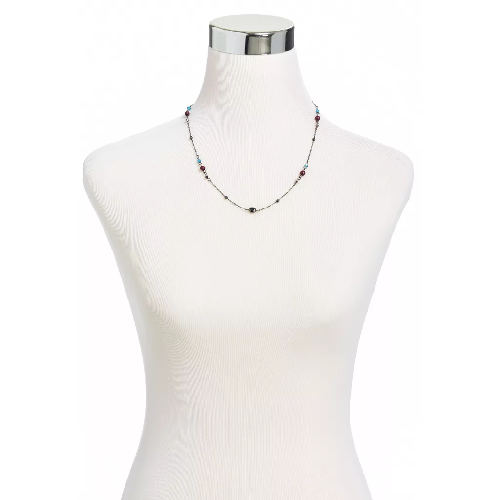 This necklace makes a statement with color and shine! Wear any way you would like.