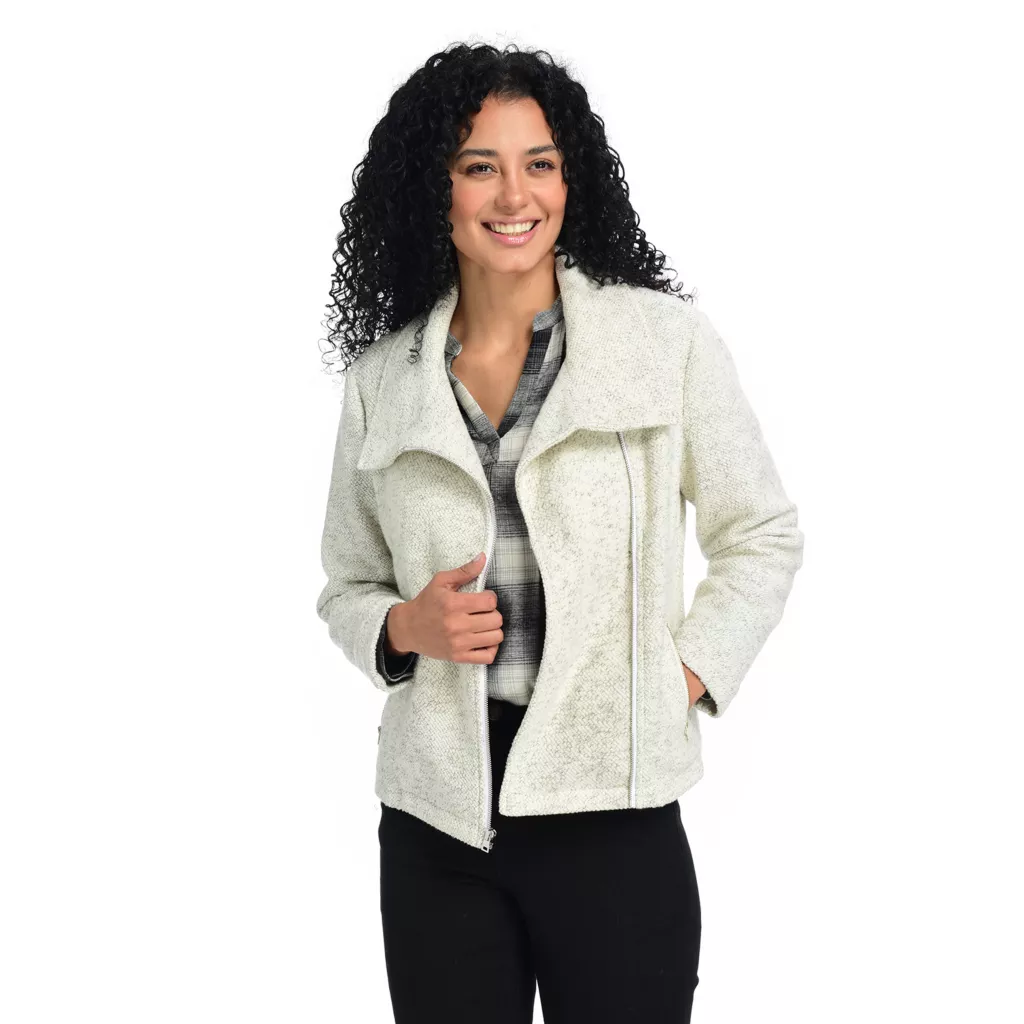 Add a layer of style to your look with this moto jacket. The sharp design combines trendy and easy-to-wear for an everyday jacket that will have you feeling amazing with incredibly soft brushed feel on the interior and exterior. Pair it with a turtleneck or scarf to complete the look!