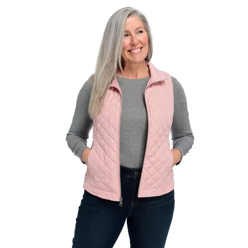 Keep it cozy in this diamond quilted vest for those transitional months into winter. The front zip keeps out chilly breezes, while keeping it breathable and lightweight with the material.