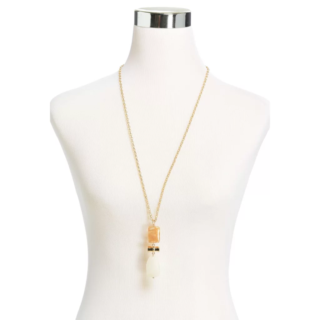 The perfect touch of gold for any outfit, this 32” necklace is easy to style with other accessories. Chic, lightweight, and a beautiful touch of ivory make this a must have. Our jewelry is hypoallergenic and nickel free for your peace of mind.