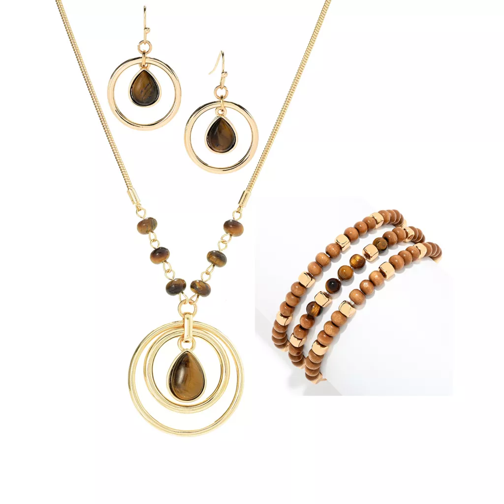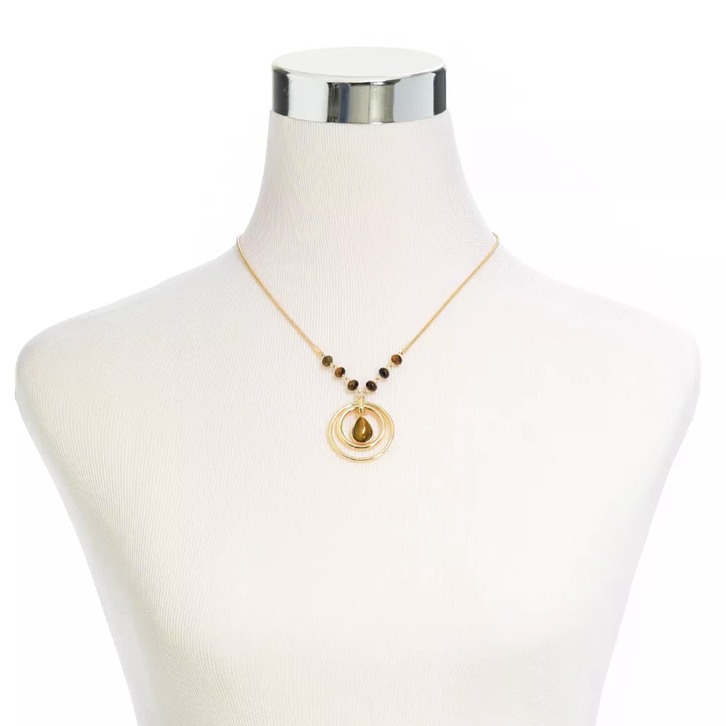 This statement necklace has the perfect amount of color and finished gold to make your outfit pop!