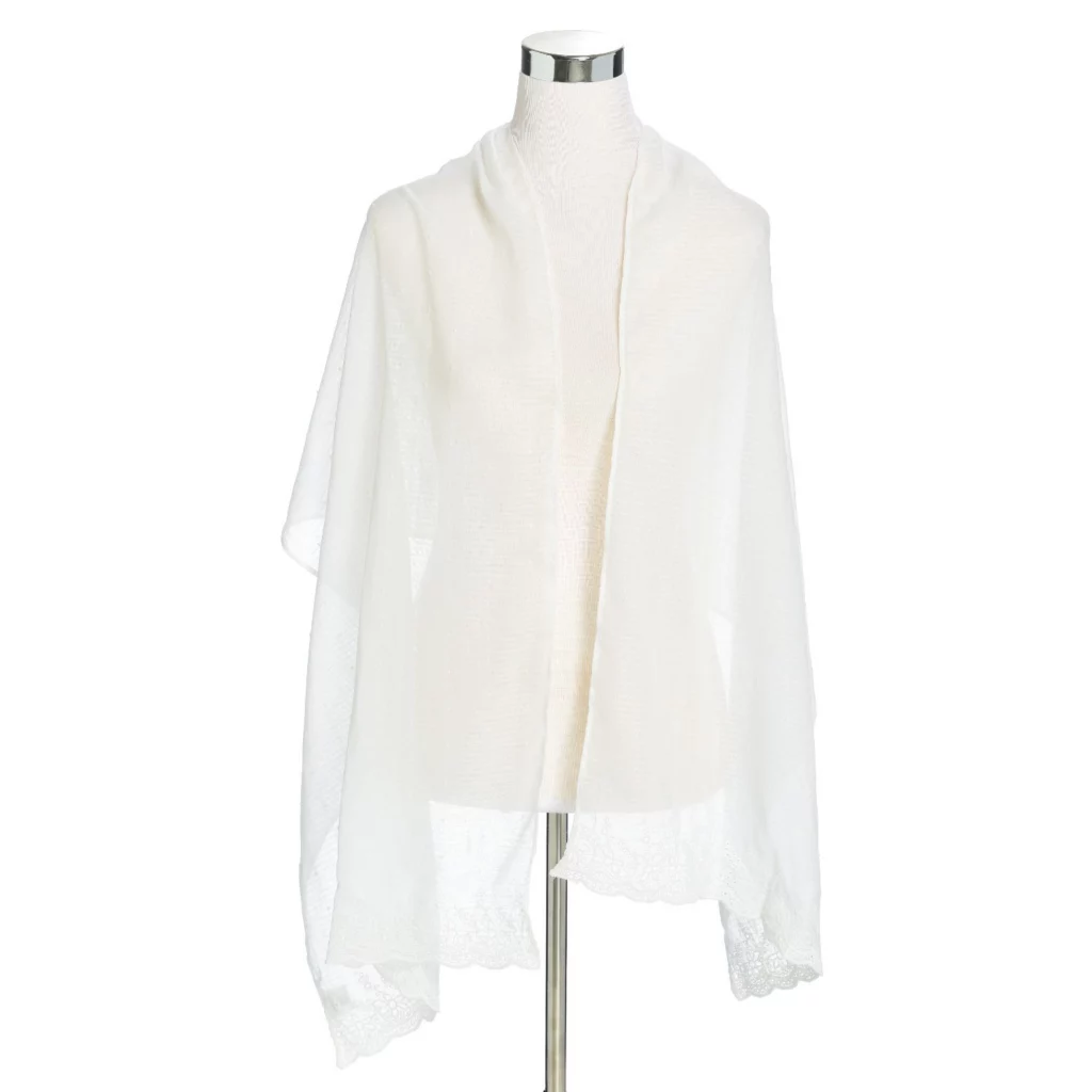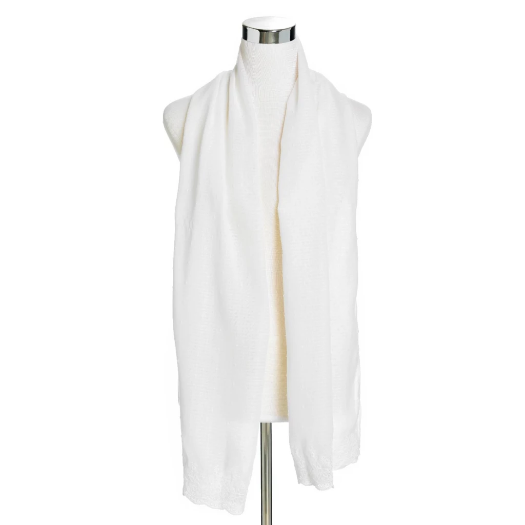 Beautiful eyelet detailing on this white scarf is a perfect finish while dot stitching adds a discreet monochromatic polka dot texture.