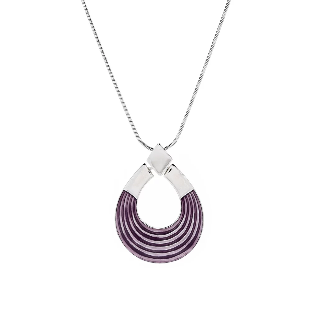 This teardrop shaped pendant necklace is finished with enamel for a beautiful shine. Snake chain is an elegant option that you can dress up or down.