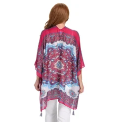 This Farmers Market kimono is the perfect topper for practically any outfit! Dress it up and add it on top of your little black dress for add that extra flair and boho style you’ve been looking for! Or spice up a tee and denim with its fun tassel detailing and distinctive hem. Offered in unique patterns and color combos, get it while you can because once its gone you will never see this pattern again!