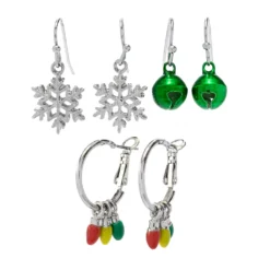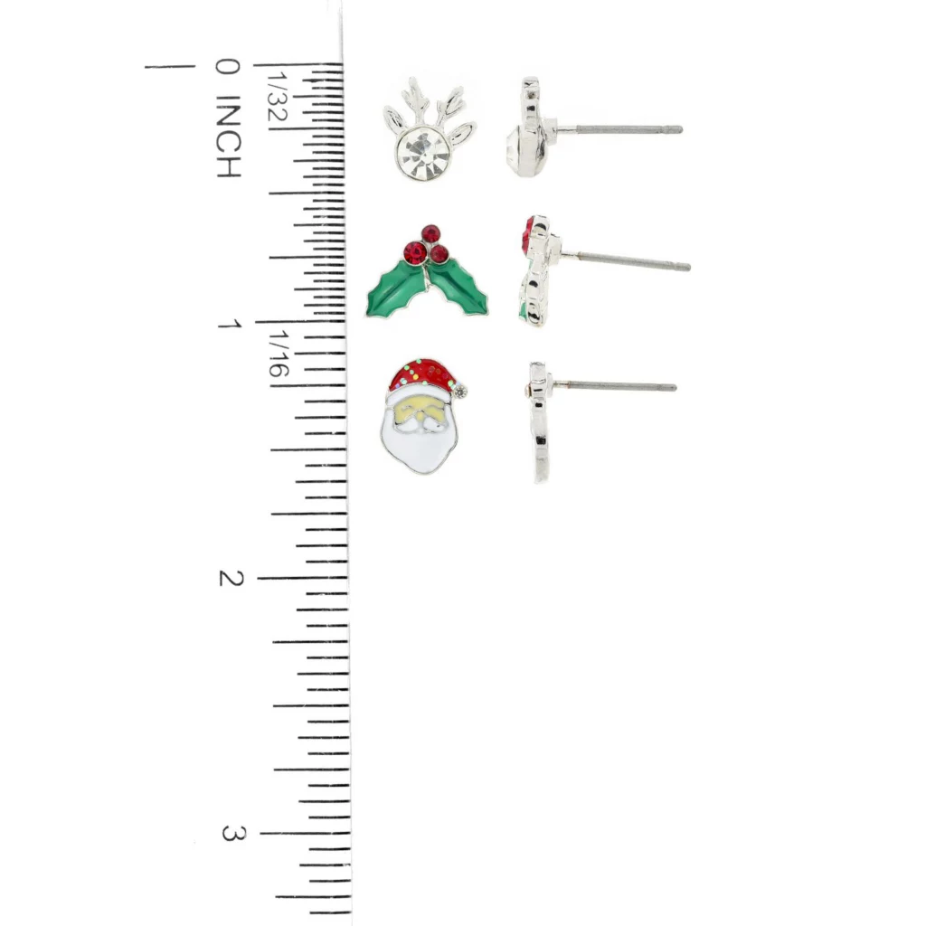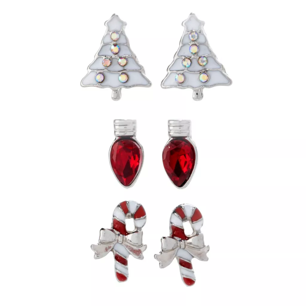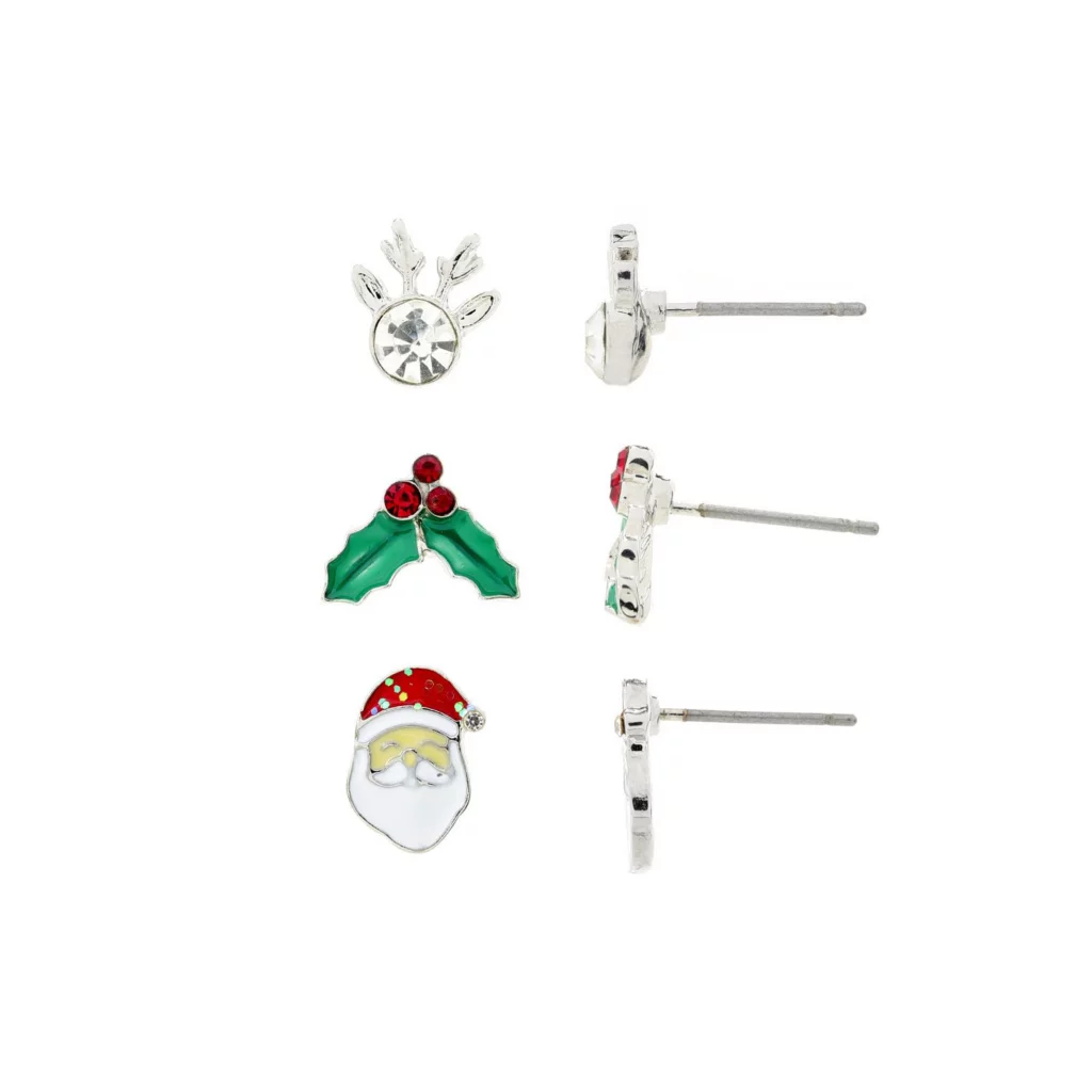 Triple the Christopher & Banks cheer with jewelry! This three pack of stud earrings is both festive and fun featuring a a gemstone reindeer, glittery Santa, and bright holly. Perfect for you or that special person on your list, don’t miss out on these—they make great stocking stuffers! Our jewelry is both hypoallergenic and nickel free, for your peace of mind.Â