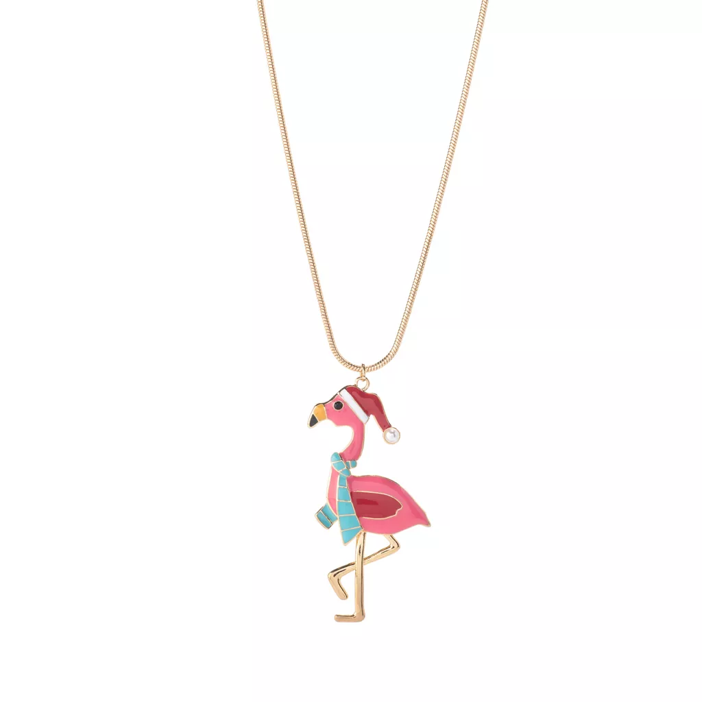 Happy Holidays—from the island! This festive flamingo will put you in a balmy mood this season. Lightweight, gold accented, and complete with the perfect pop of pink, you certainly can’t go wrong with this little guys! Also available the Festive Flamingo Fish Hook Earrings (sold separately). Our jewelry is both hypoallergenic and nickel free, for your peace of mind.Â