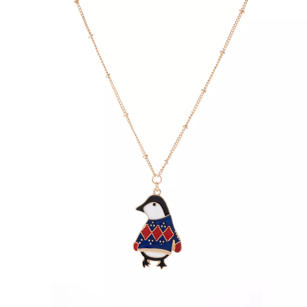 Penguins on parade (in the cutest sweaters!) These gold accented fish hooks are light and cute for a day-time style, or a subtle going-out look. Give ’em to whoever’s on your good list (and maybe your naughty list, too). Also available the Festive Penguin Fish Hook Earrings (sold separately). Our jewelry is both hypoallergenic and nickel free, for your peace of mind.Â