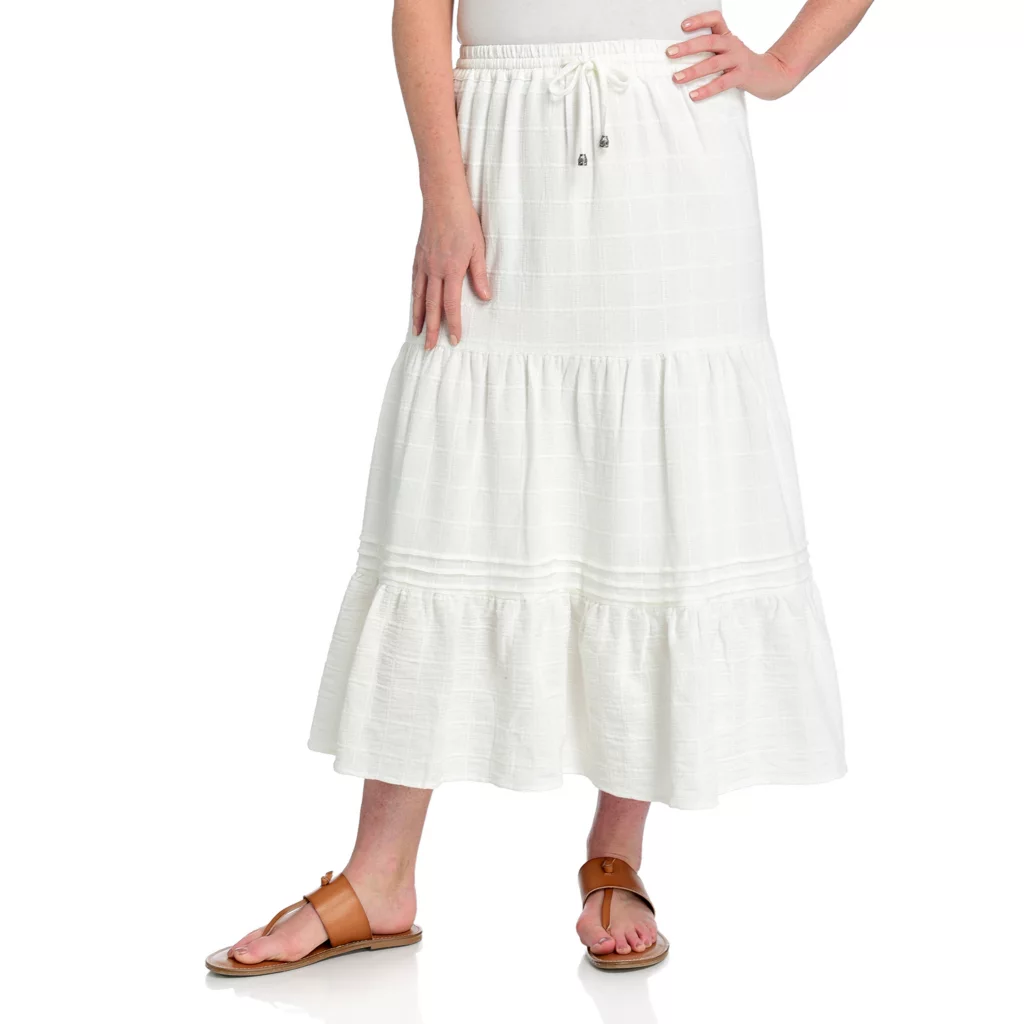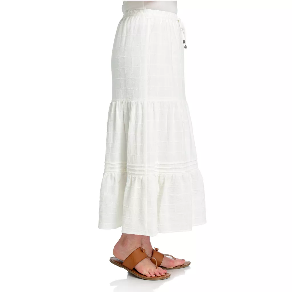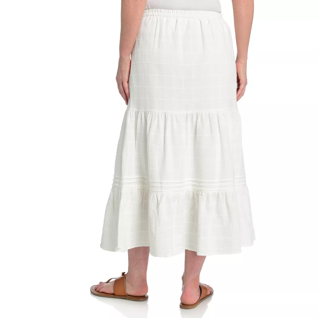 This cotton skirt is a versatile piece you’ll reach for again and again! The grid-textured pattern across the fabric adds texture with a comfortable drawstring waistband, with the black color way unlined and the white color way lined for coverage. Dress it up with a blouse or down with a Perfect Tee!