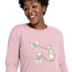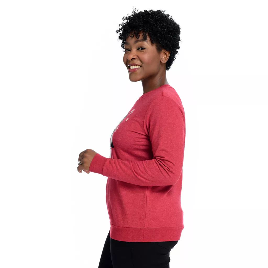 Christmas time cute all rolled into one amazing sweatshirt! This makes the perfect gift for the holidays, and of course it would be marvelous in YOUR collection, too (if you just want to buy for you). Sweater features a ribbed cuff and hem, which gives it an intentional, put-together look that can be dressed up, down, or as loungewear. Cotton blend lends to breathability and a perfect, lightweight piece!