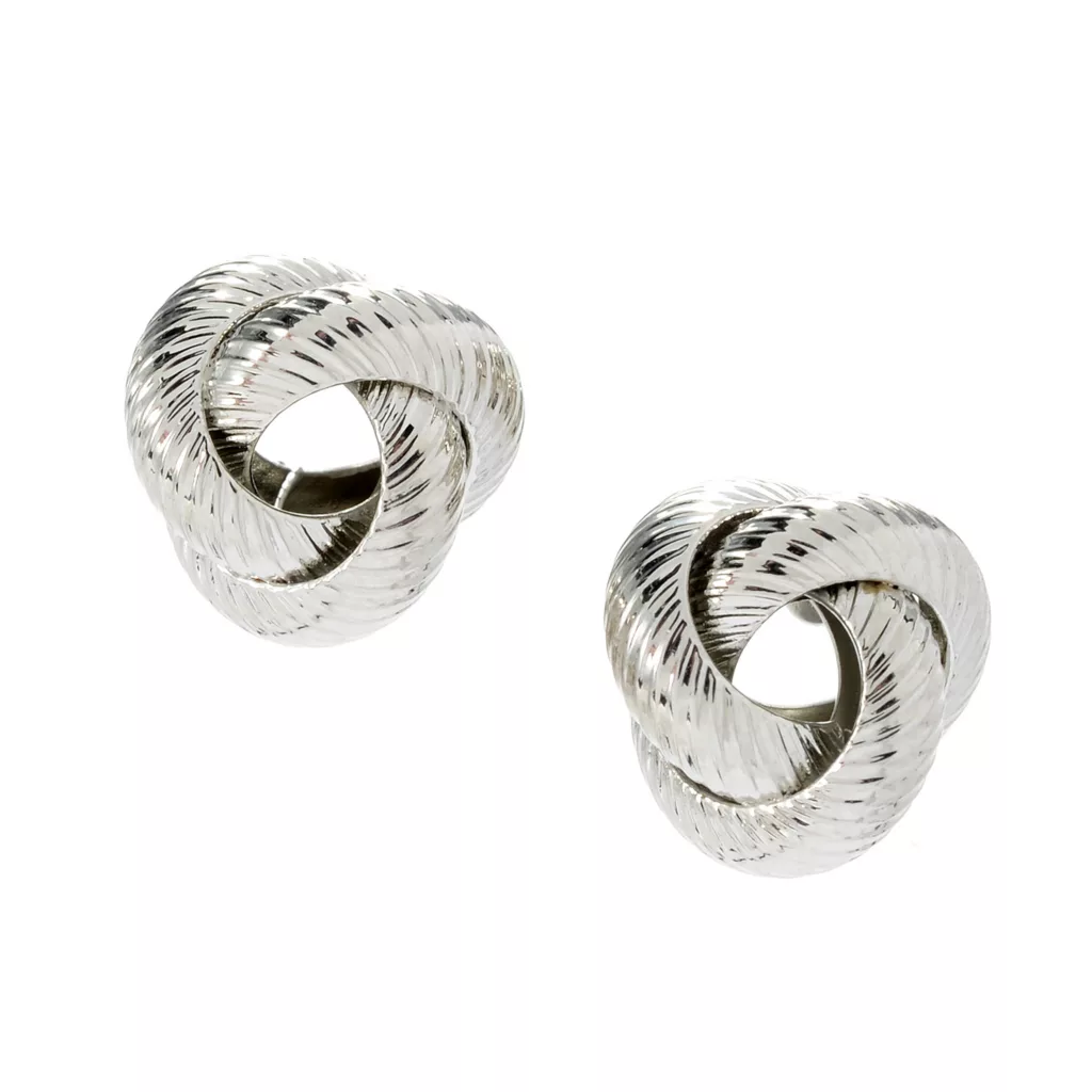 Textured metal twists into a bold, lightweight knot. Post back keeps them in place for an all-day accent.