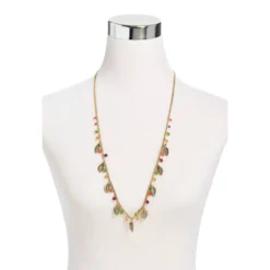Make a statement with this colorful and great length necklace that goes with all sorts of tops.