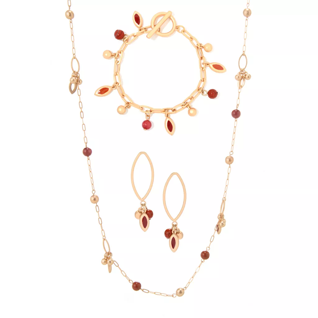Cluster of leaves and beads adds color and shine to your outfit. Pair this necklace with our Perfect Tees and jeans for an iconic season look!