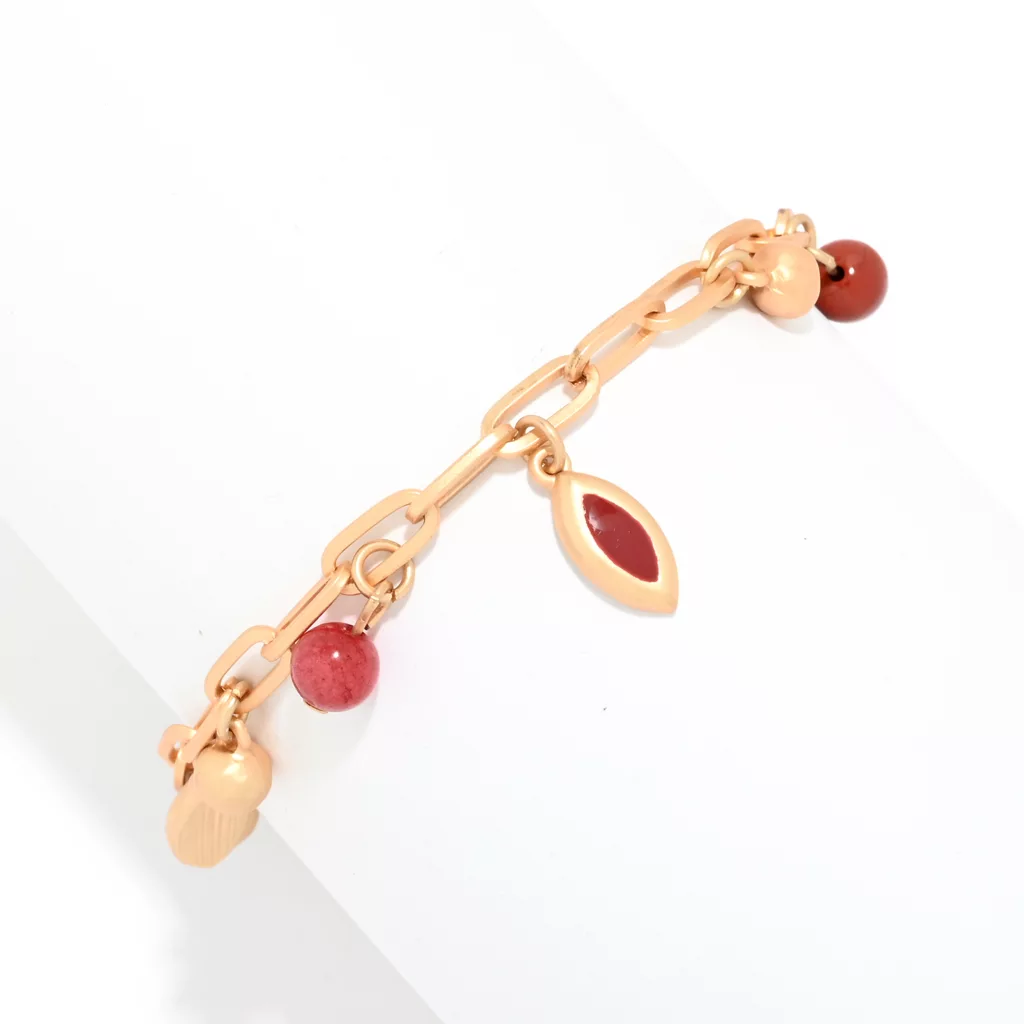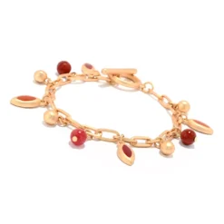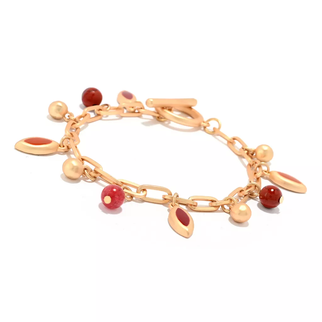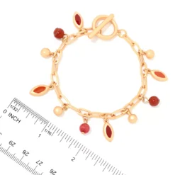 Leaves charms dangle on this link toggle bracelet and adds an updated look. Easier to put on than a small clasp.