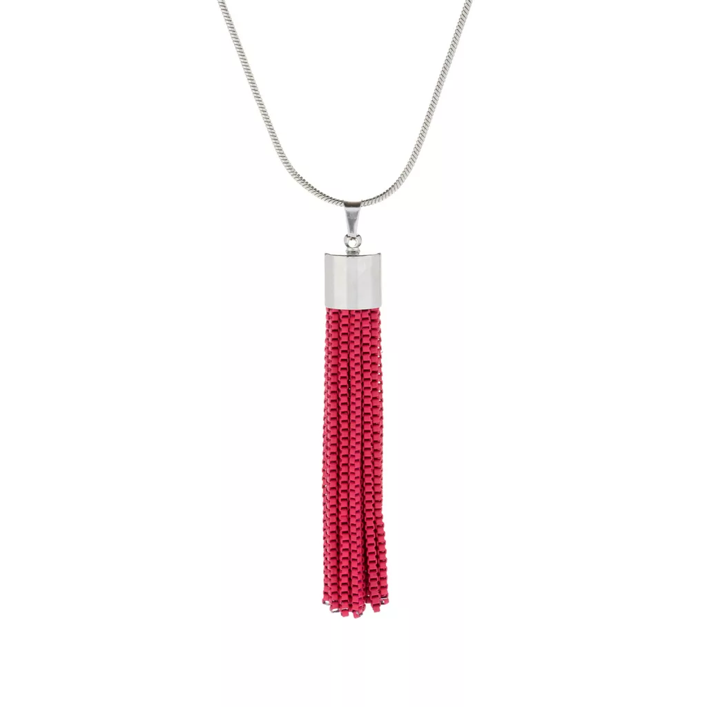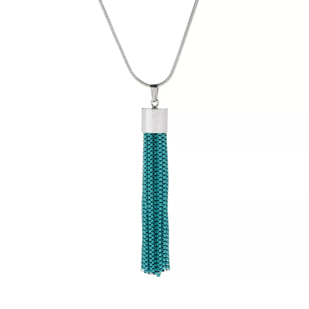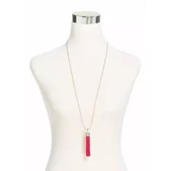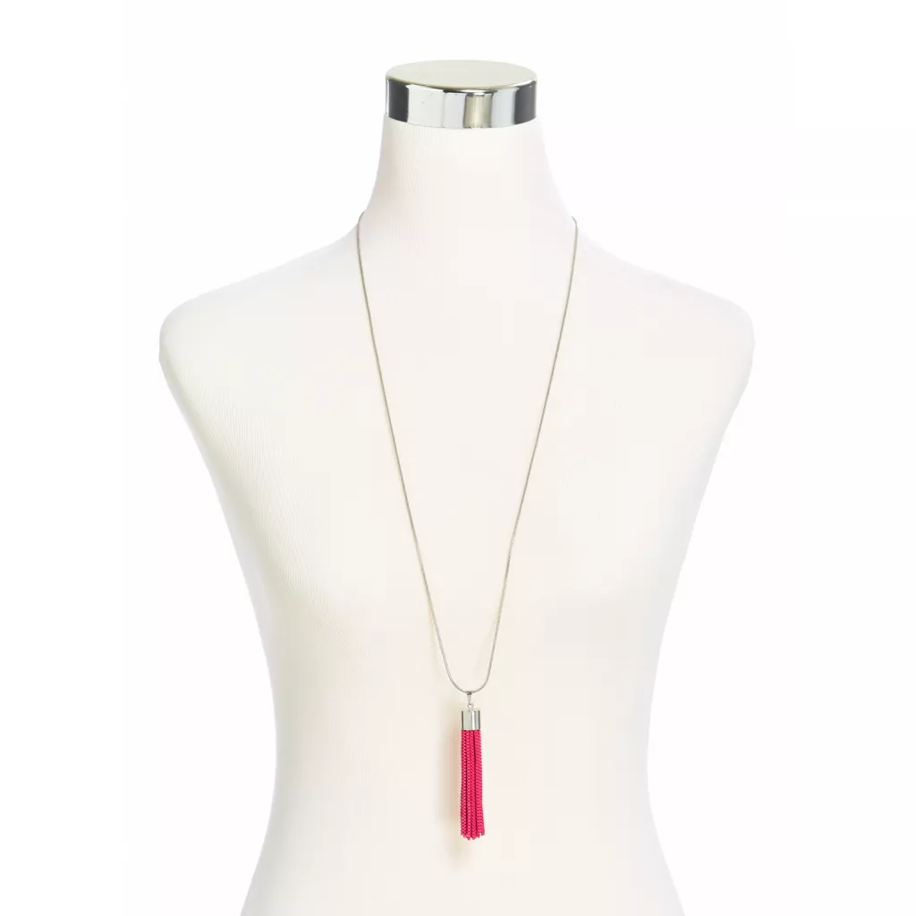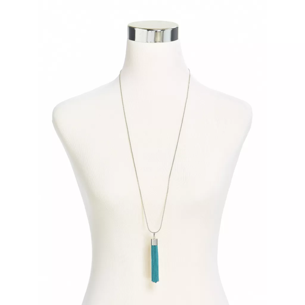 Add texture and vibrant tones to your favorite top. This long necklace features small, lightweight chains painted with bright colors to complete your look.