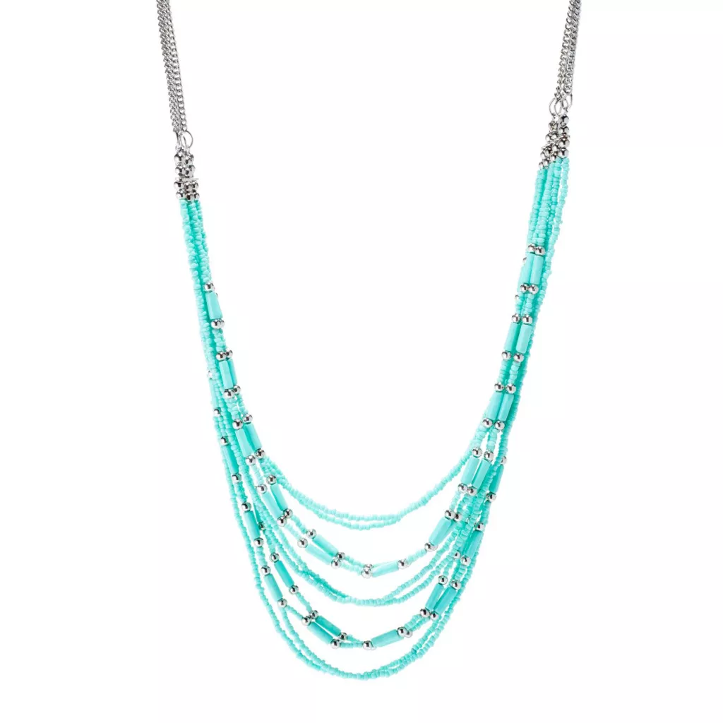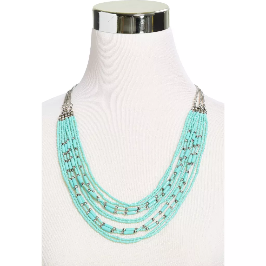 Featuring tiny seed beads and tube beads, our multi strand seed bead necklace will add a splash of color to any outfit. This statement necklace will be the talk of your summer get togethers.