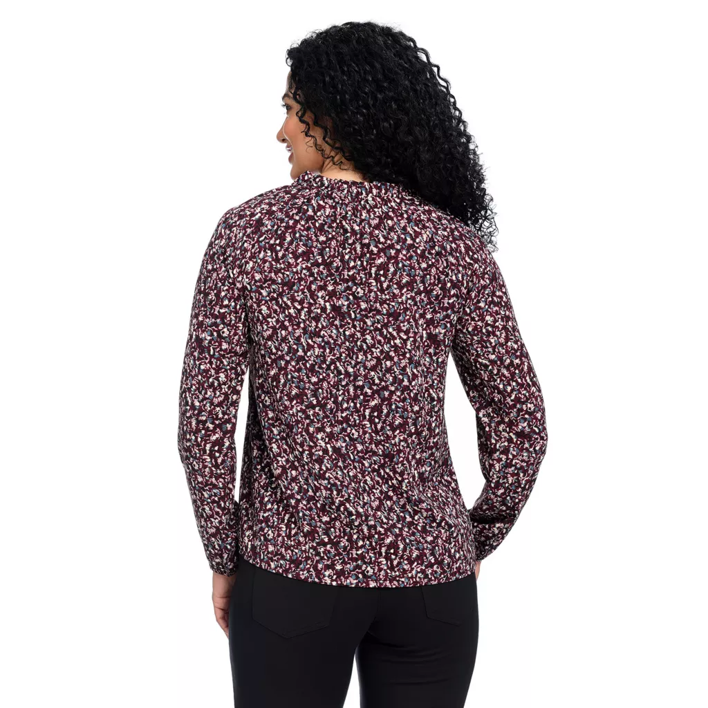 Stun in autumn’s light with this elegant blouse . The ruffled V-neck brings a feminine silhouette and the elastic cuffs on the sleeve add a unique touch of style, ready for your date nights and working days.