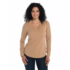 Elevate your wardrobe with our Long Sleeve Button Cuff V-Neck Thermal Tee. The classic V-neck meets button cuffs for a touch of elegance. Crafted for comfort and style, its thermal fabric offers warmth. Perfect for layering or standalone wear, this tee seamlessly blends fashion and functionality, making it a versatile addition to your collection.
