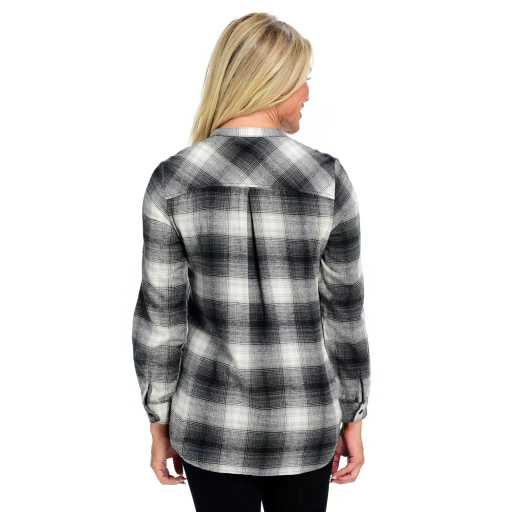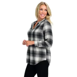 Plaid is rad and on trend this season! Perfect with jeans or leggings and your favorite boots, the pintuck detailing on the front of this plaid adds just the right touch of charm. Throw in your favorite vest and jewelry, this piece is an absolute staple in any seasonal collection!