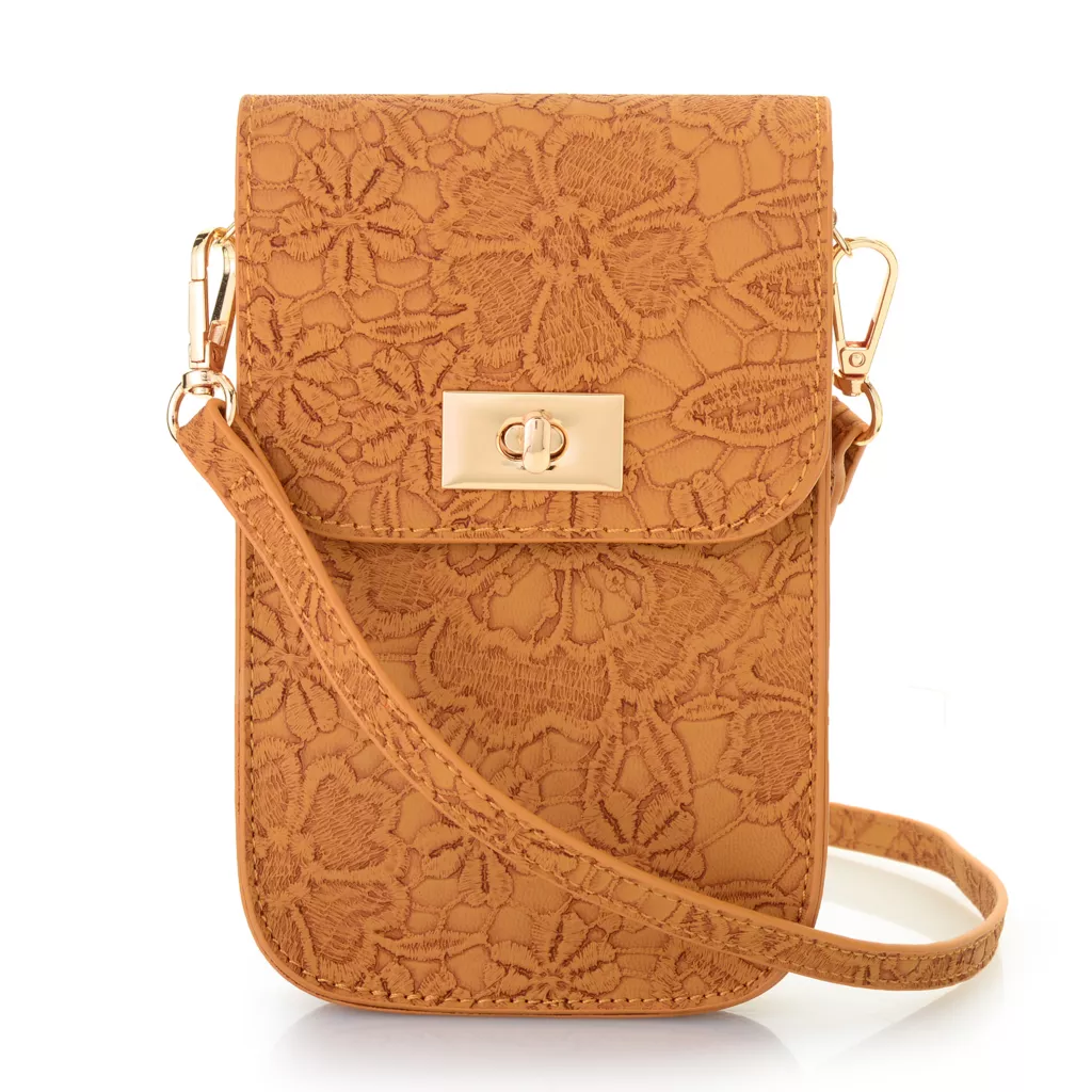 Tote your phone around in style with the Leonora faux leather carrier from Mellow World. Featuring embossed stitching and a floral print, you’ll love the spring energy it brings to any season! The touchscreen back allows you access without needing to pull your phone out of this darling bag while three compartments aim to keep you organized! Made of a lightweight faux leather, you’ll adore this phone carrier and the charm it brings to your day.