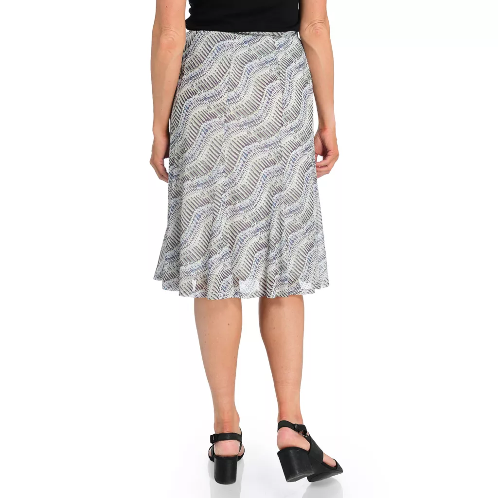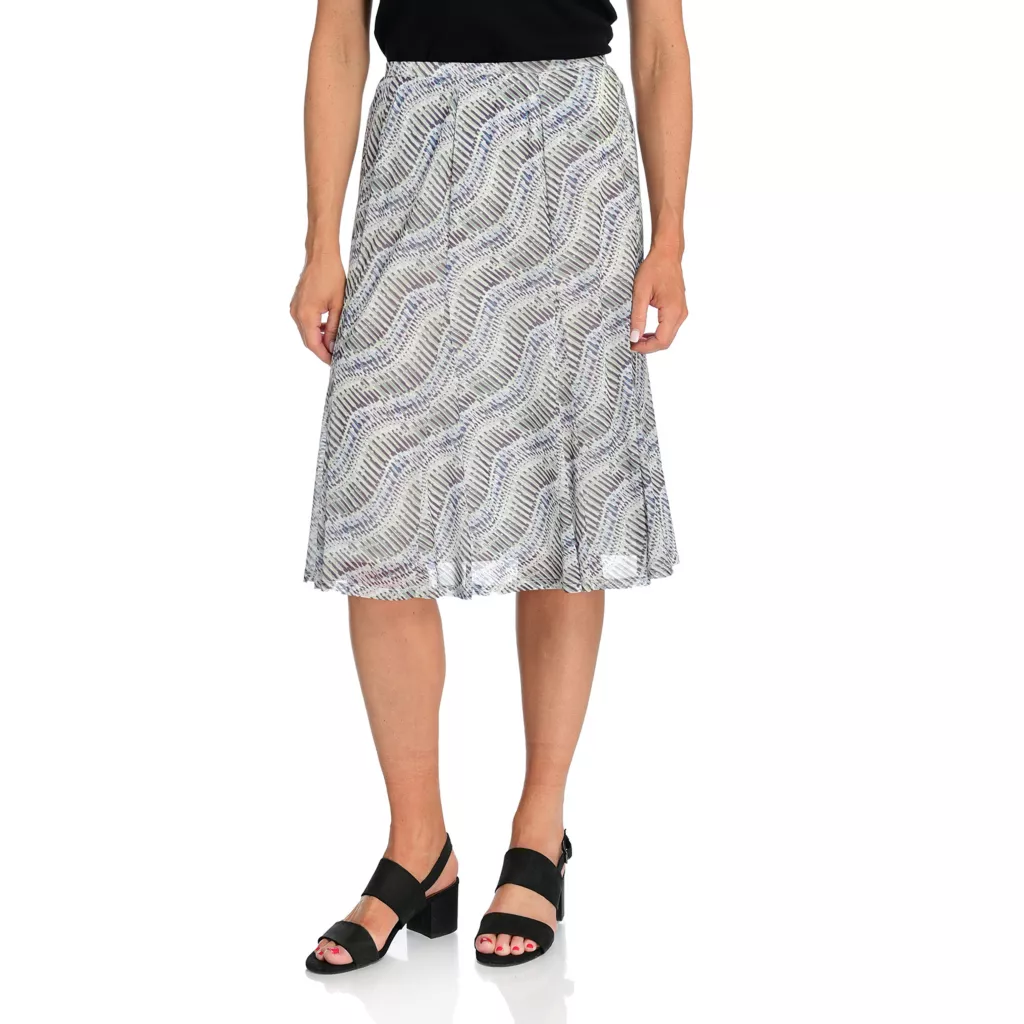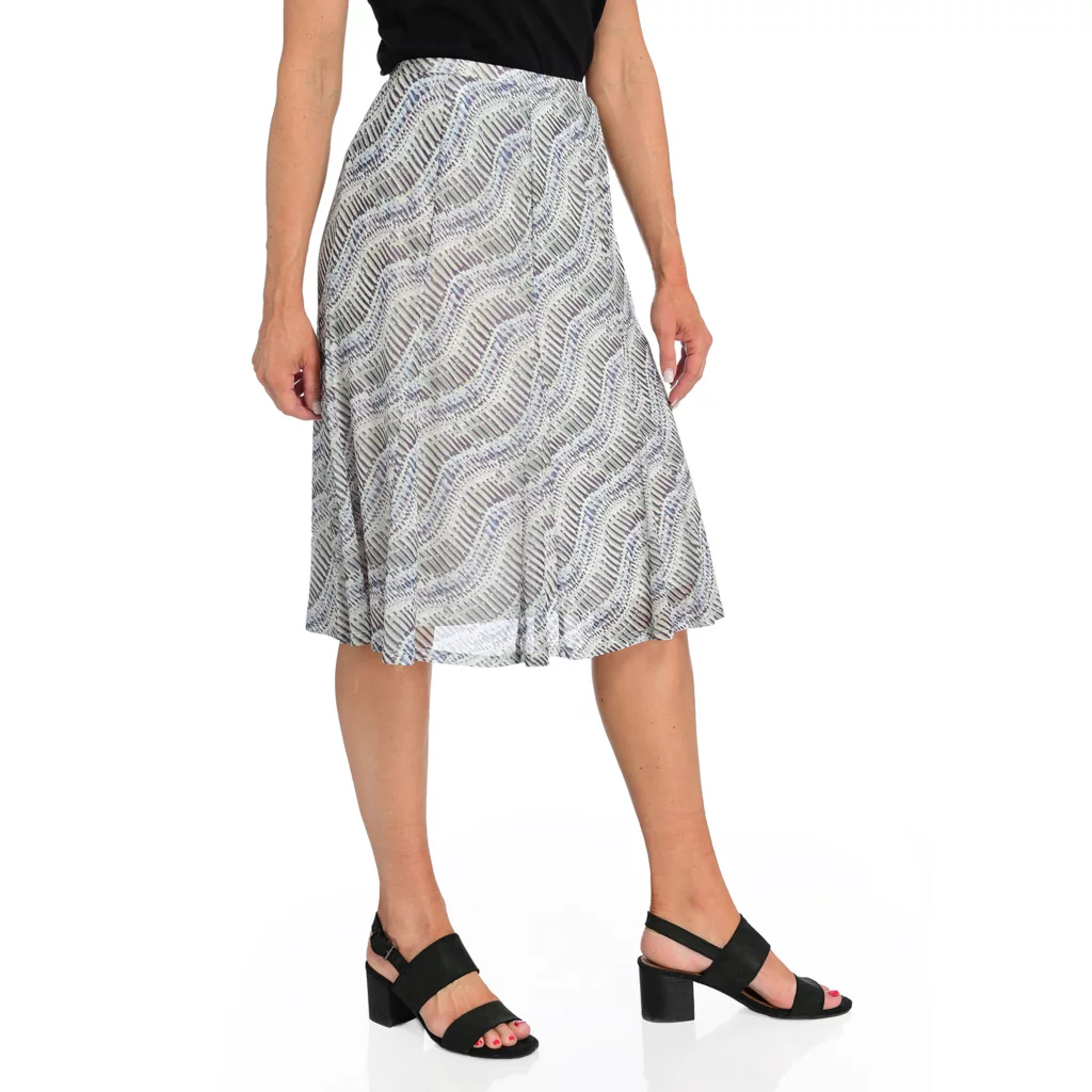 Easy breezy style comes to you in this pull-on midi skirt. Soft mesh fabrication prevents wrinkles with a breathable feel. Smooth lining highlights the pretty printed pattern while providing an extra layer of comfort. Designed with a slight flair, this skirt moves with you from patio parties to events on a sunny day!
