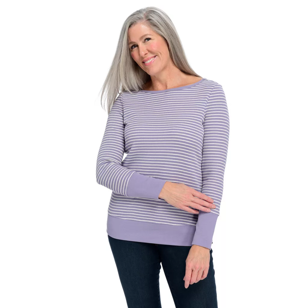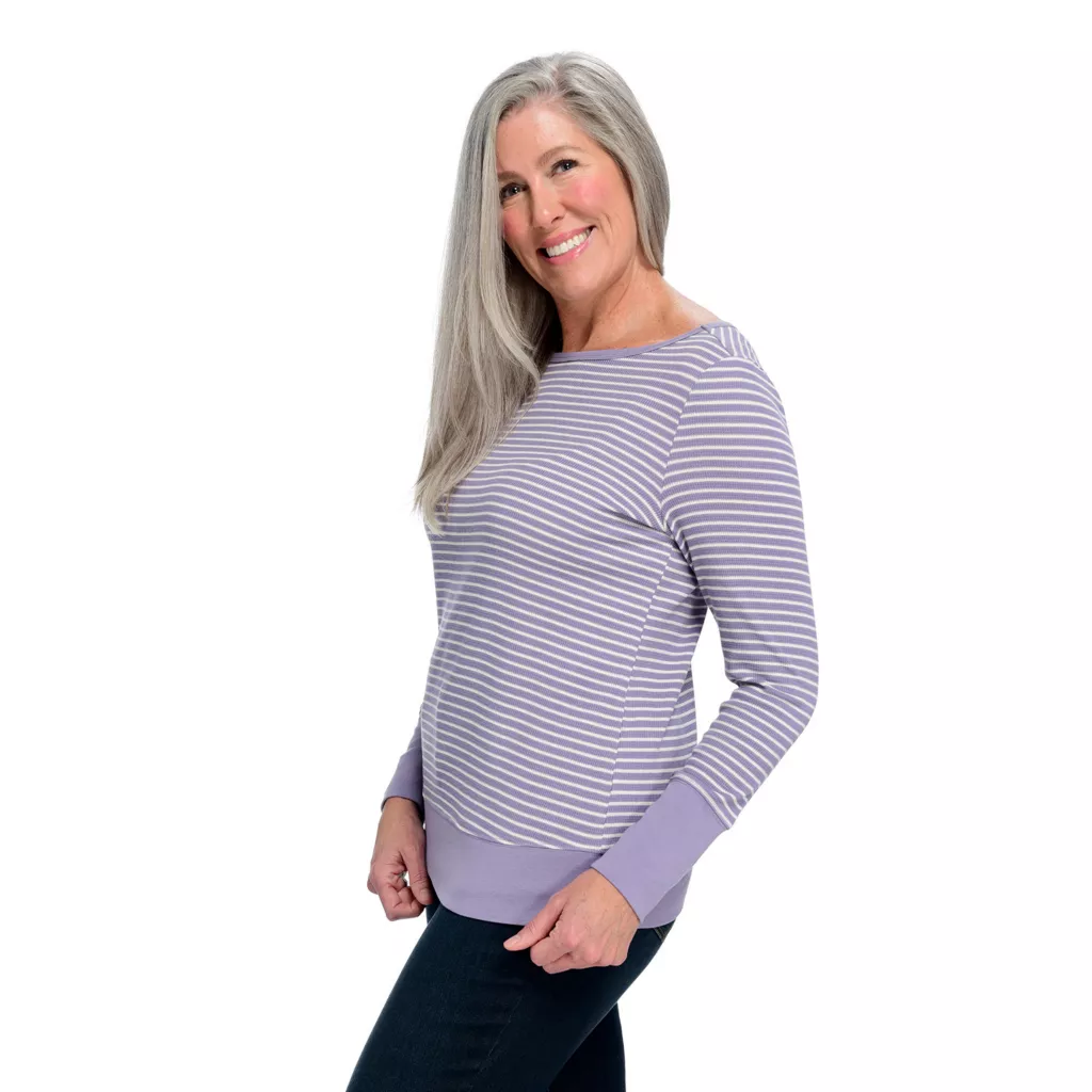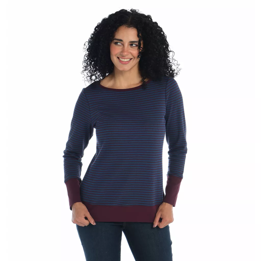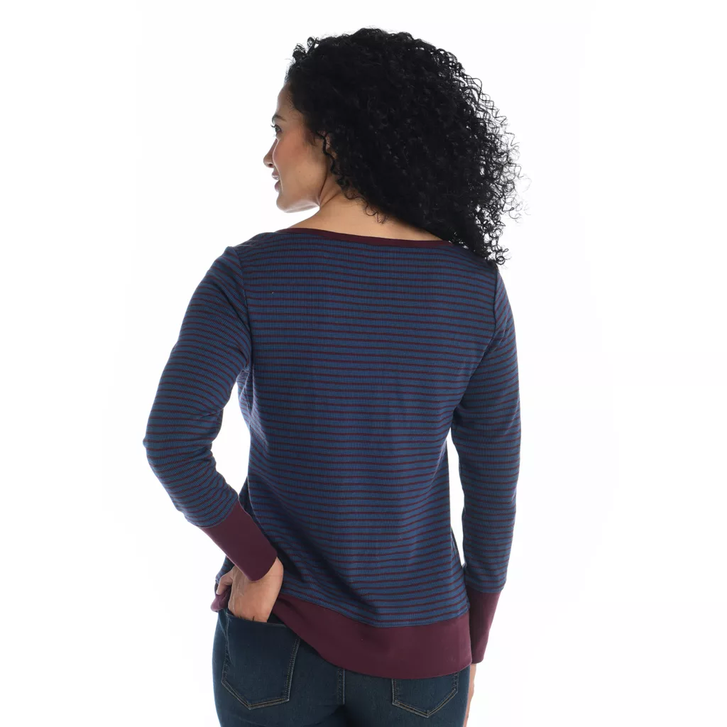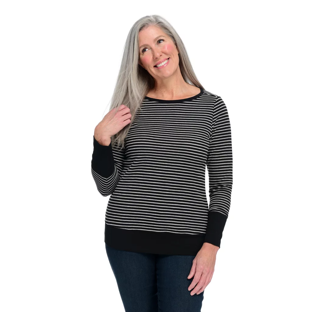 If we’re talking versatility, a thermal tee is definitely in the mix! Comfortable, on trend, and easy to style, our Mini Stripe Boatneck Thermal checks all the boxes. Wear it with denim, Pontes, or skirts. Also an easy layer beneath a vest or jacket that adds a pop of character, the ribbed cuff and hem give it a flattering, fitted look that compliments any body type! You absolutely can’t go wrong with these thermals, and if they aren’t in your collection, well. What’re you waiting for?