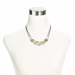There’s no shortage of fascination in this multi-tone layered necklace. Silver and gold hues in bead-filled ovals on a black cord adds fun detail to any outfit!