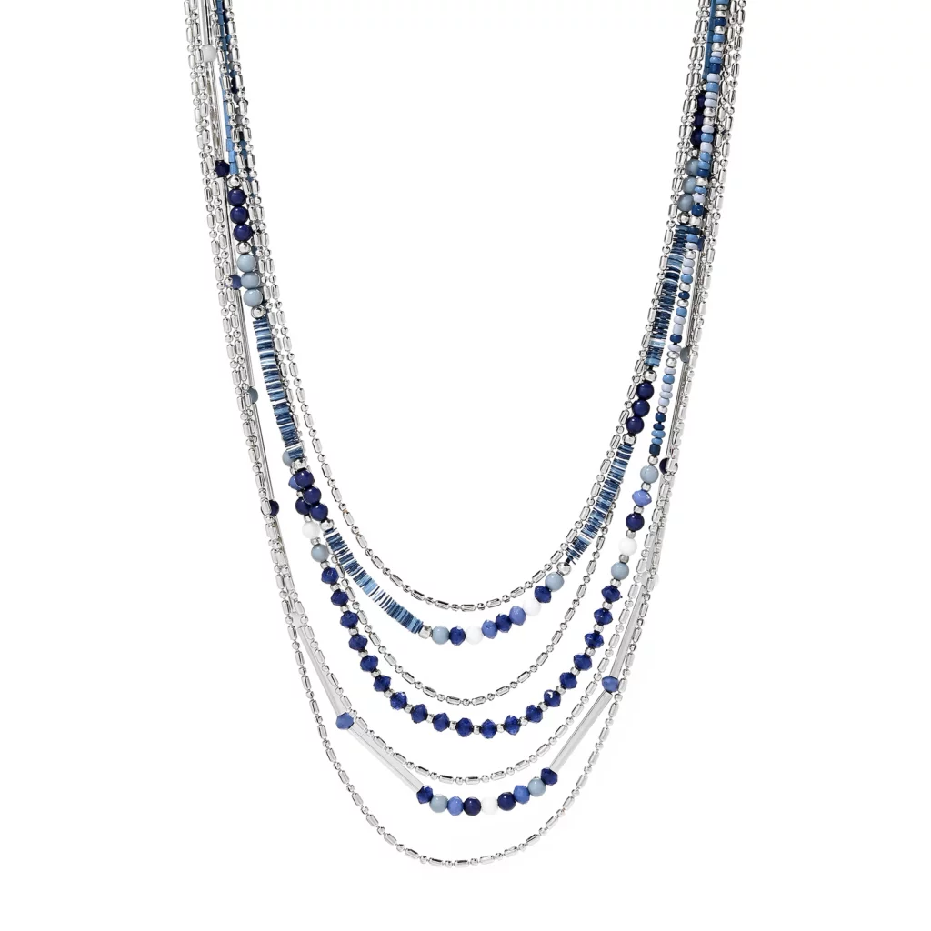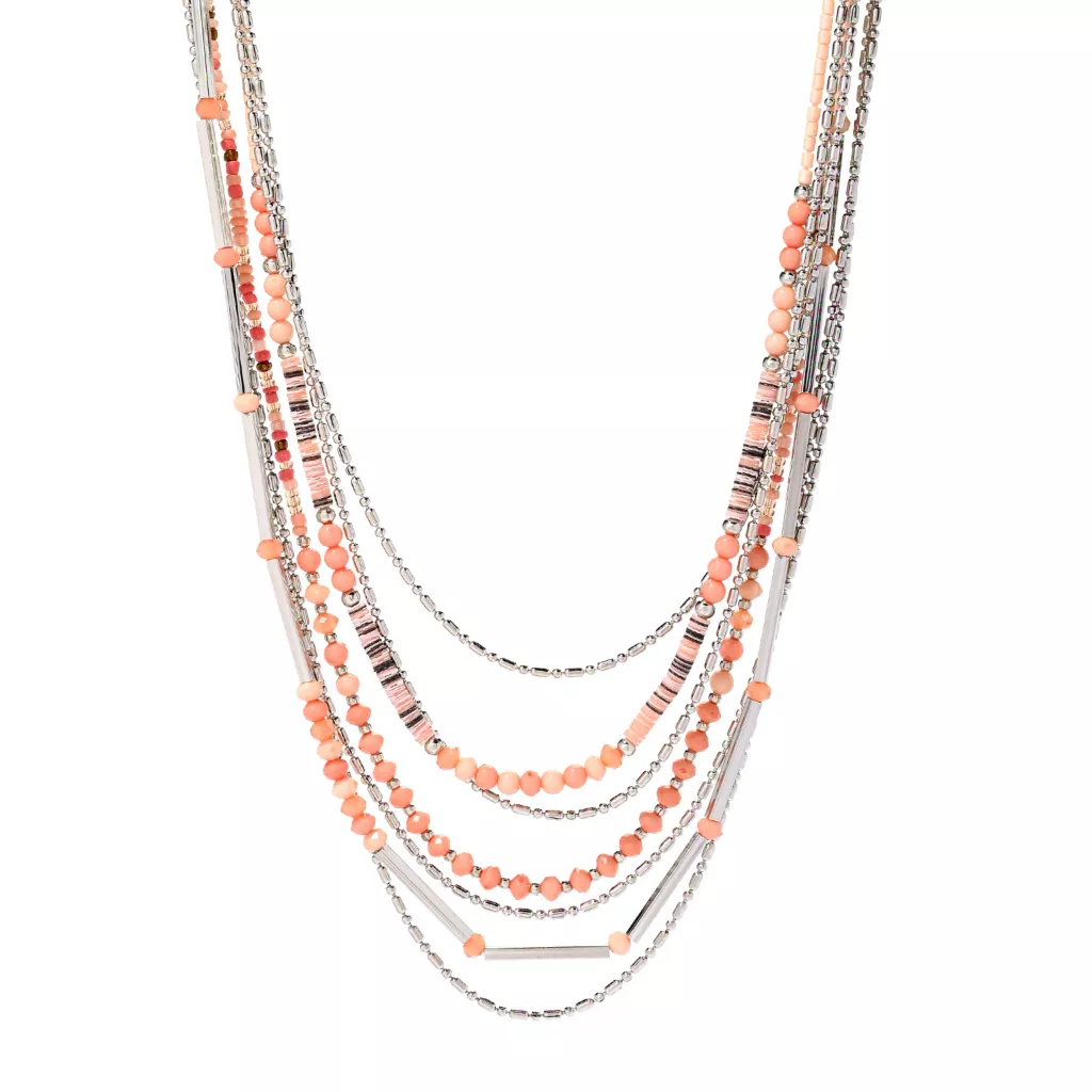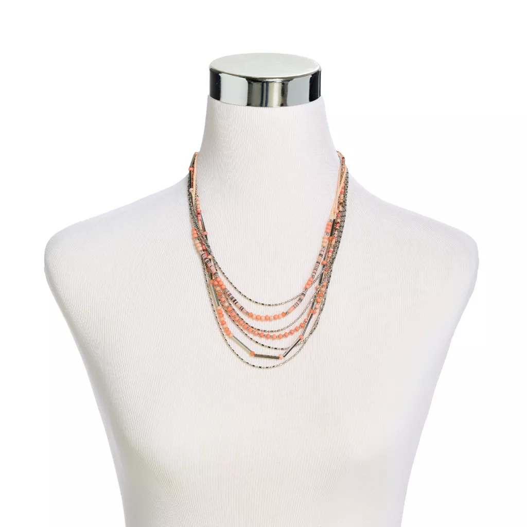 Shades of blue or peach seed beads create this beautiful necklace. The perfect pop of color for casual or polished looks!