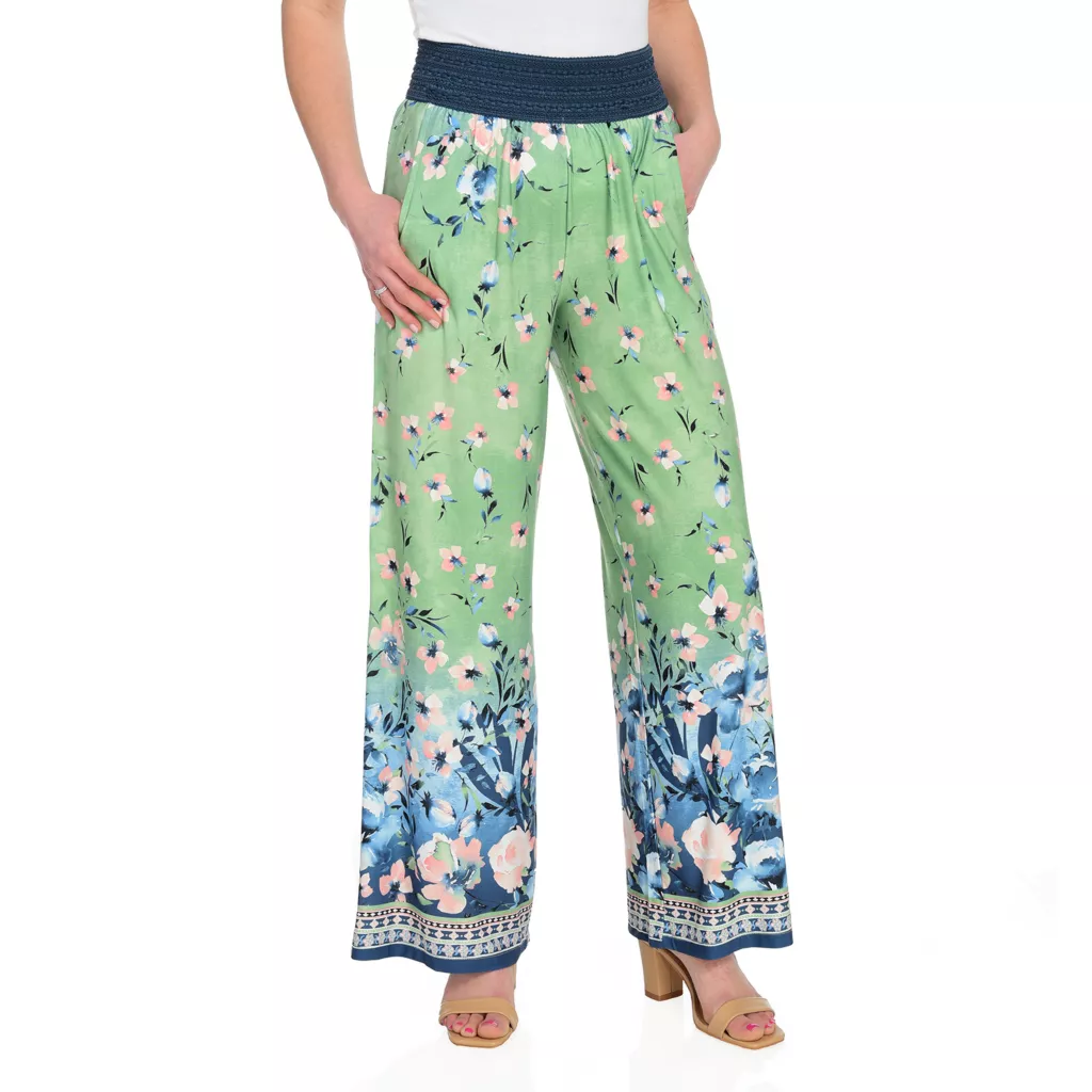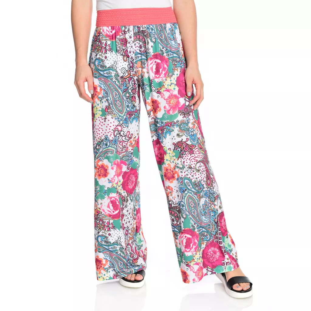 These printed palazzo pants will punch up any outfit you choose! The soft, stretchy knit fabric and elasticized (and decoratively trimmed) waist will fit comfortably and reliably every time you pull them on. Grab a matching top and sandals and show off your style!
