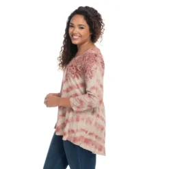 Easy and stylish, this One World top makes your outfit selection process that much easier! With a flowy silhouette for comfort, you’ll love slipping on this top with your fave denim or stretchy leggings. The hi-lo of the hemline offers the perfect amount of coverage and a bustle detail on the back adds a fashionable flair. In unique prints and colorways, you’ll be all set for transitional season wear with this One World number. Oh, and did we mention the fun beadwork at the neck? Get ready to wow!