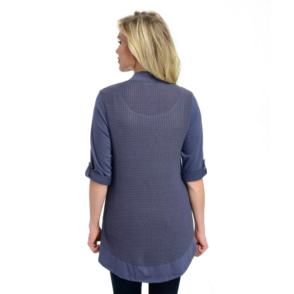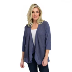 - Silhouette: 3/4″ ROLL TAB SLV OPEN FRONT CARDIGAN