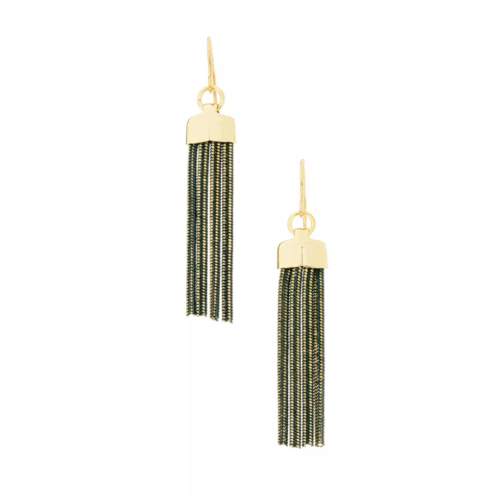 - Strands of painted metal is a way to elevate your outfit and subtly add color.