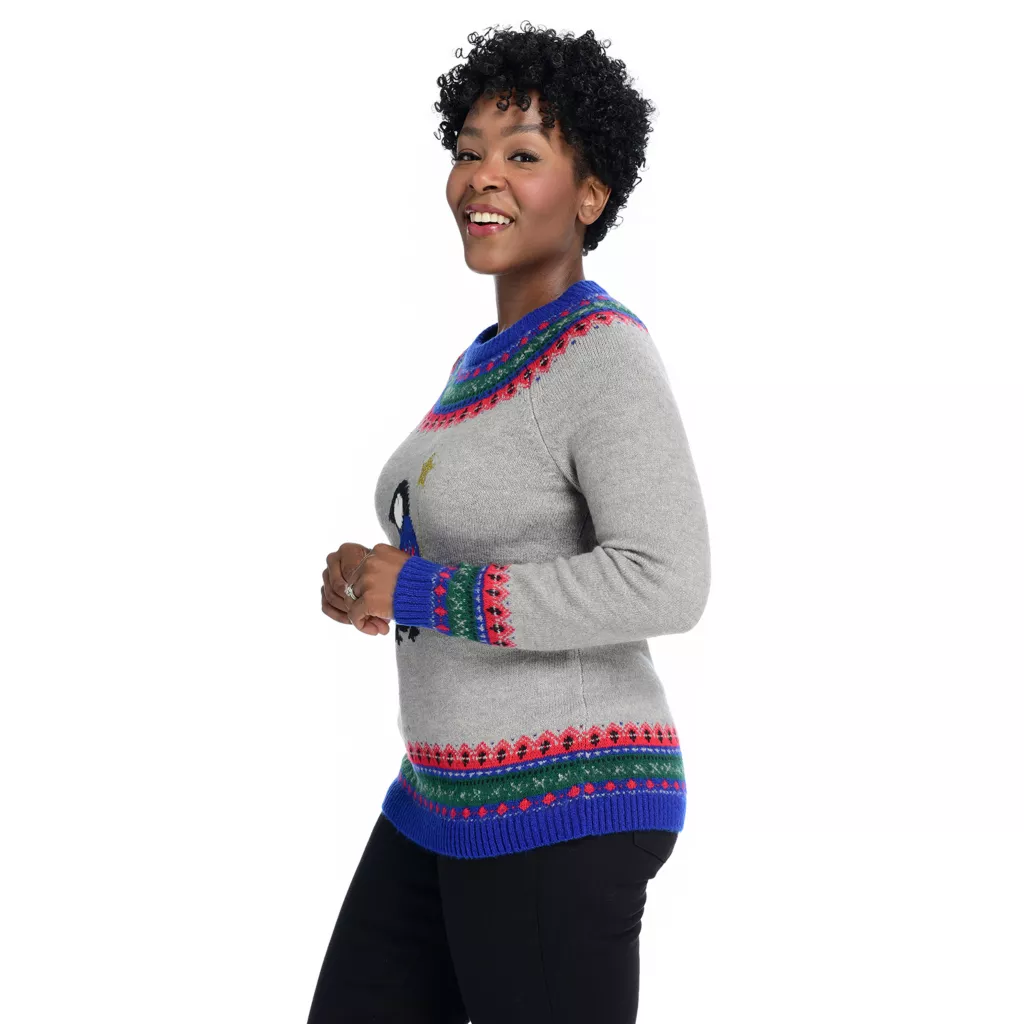 Bring some holiday cheer to any party in this cute and playful Party Penguin sweater. Accented with fair isle trim gives festive pops of color.