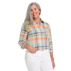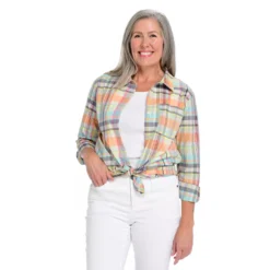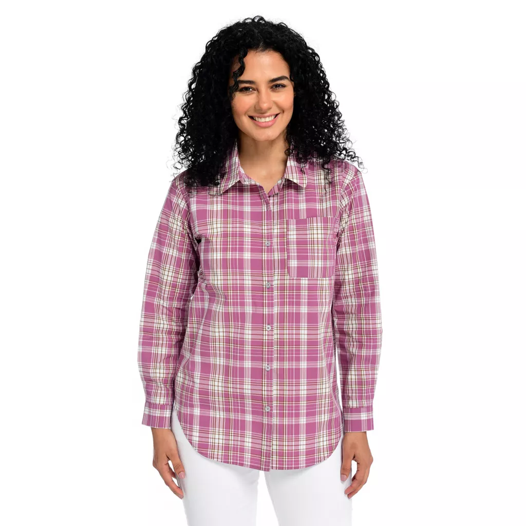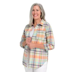This classic cotton button-down shirt has a fun plaid twist! Lots of versatility to wear your way with the front buttoned or open, and button cuffs that can be rolled up or down. Layer away for a shirt that goes from casual to dressed-up.
