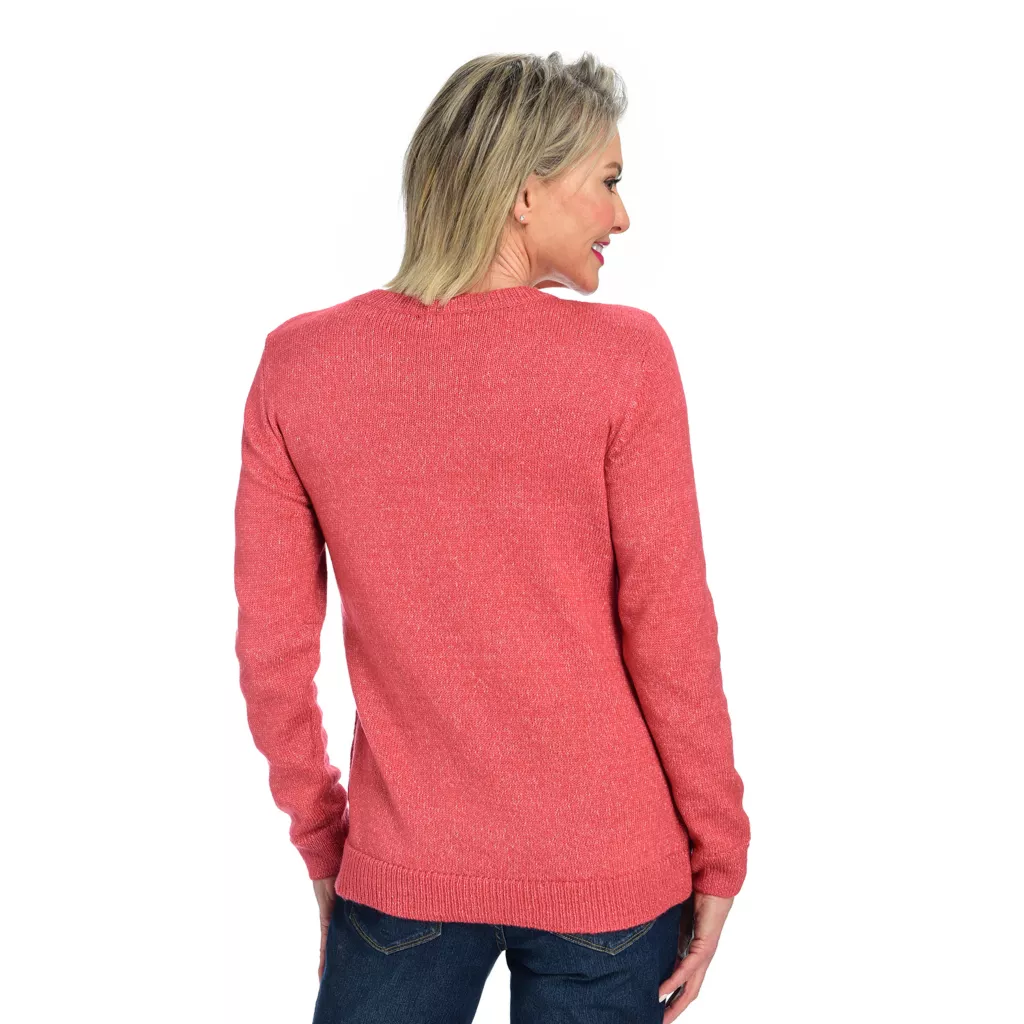 Cozy up in the pattern that never goes out of style. Featuring a polka dot pattern on the front, this soft pullover brings a cute look at every angle. Versatile sweater, great for layering and throwing on for an easy style day.
