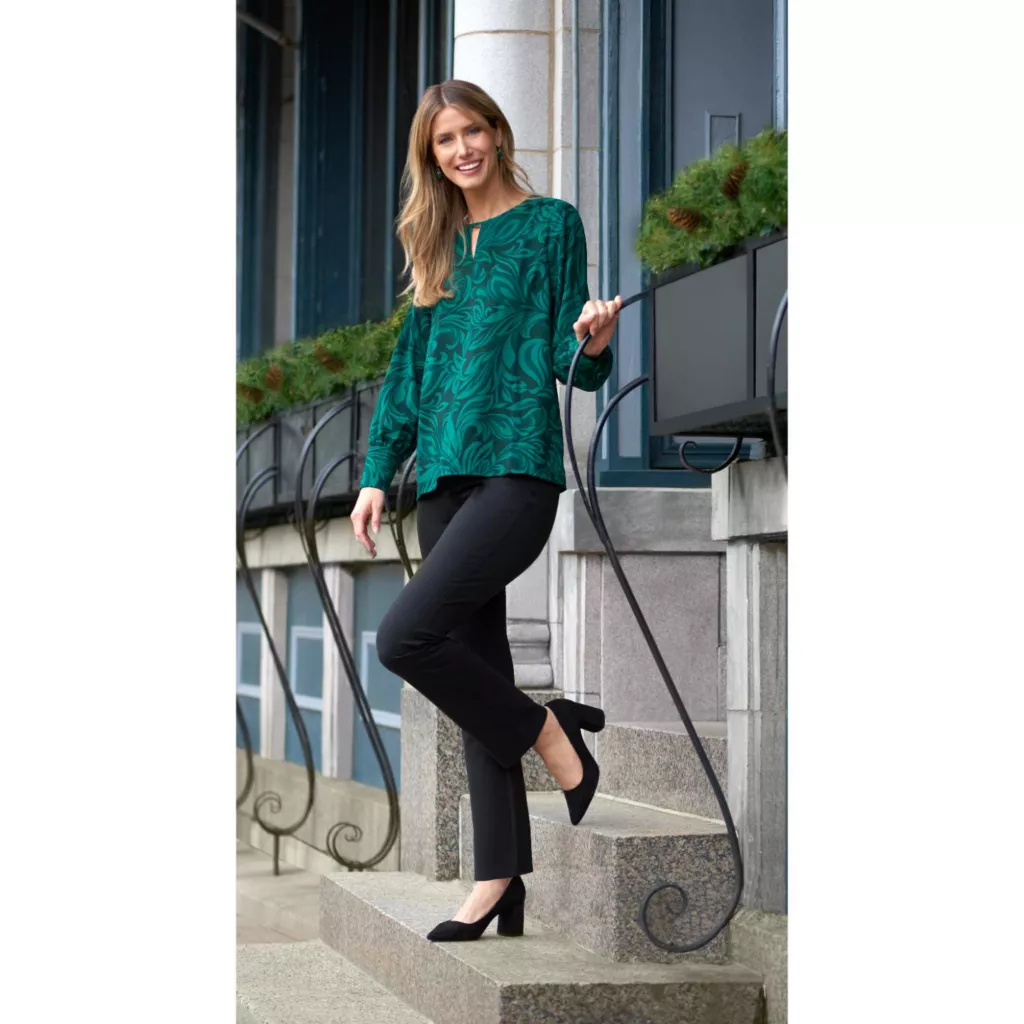 Elevate your wardrobe with our Printed Cuff Sleeve Keyhole Neck Blouse. Available in three exclusive Christopher and Banks patterns, it’s perfect for holidays, events, and workwear. Discover versatile style with a touch of sophistication.