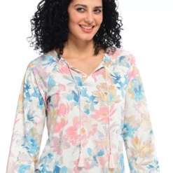 When you need to combine comfort with style, this soft top has you covered! Notch neck with tassel detail and elastic cuffs adds something special. Throw it on with jeans, or trousers to dress it up!