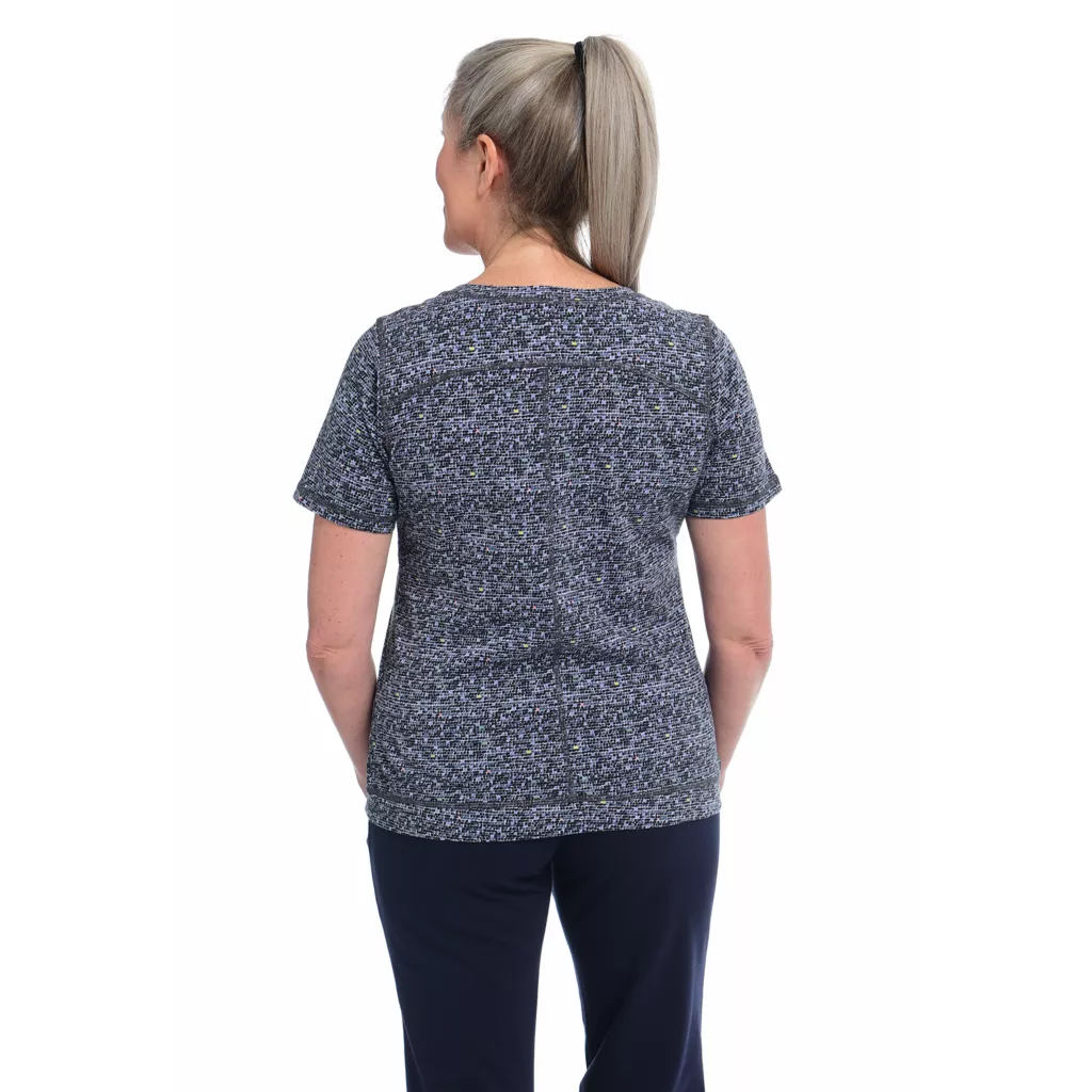 - Shirt Length: Missy (m): 33″; Woman (1x): 31″; Petite (m): 33″