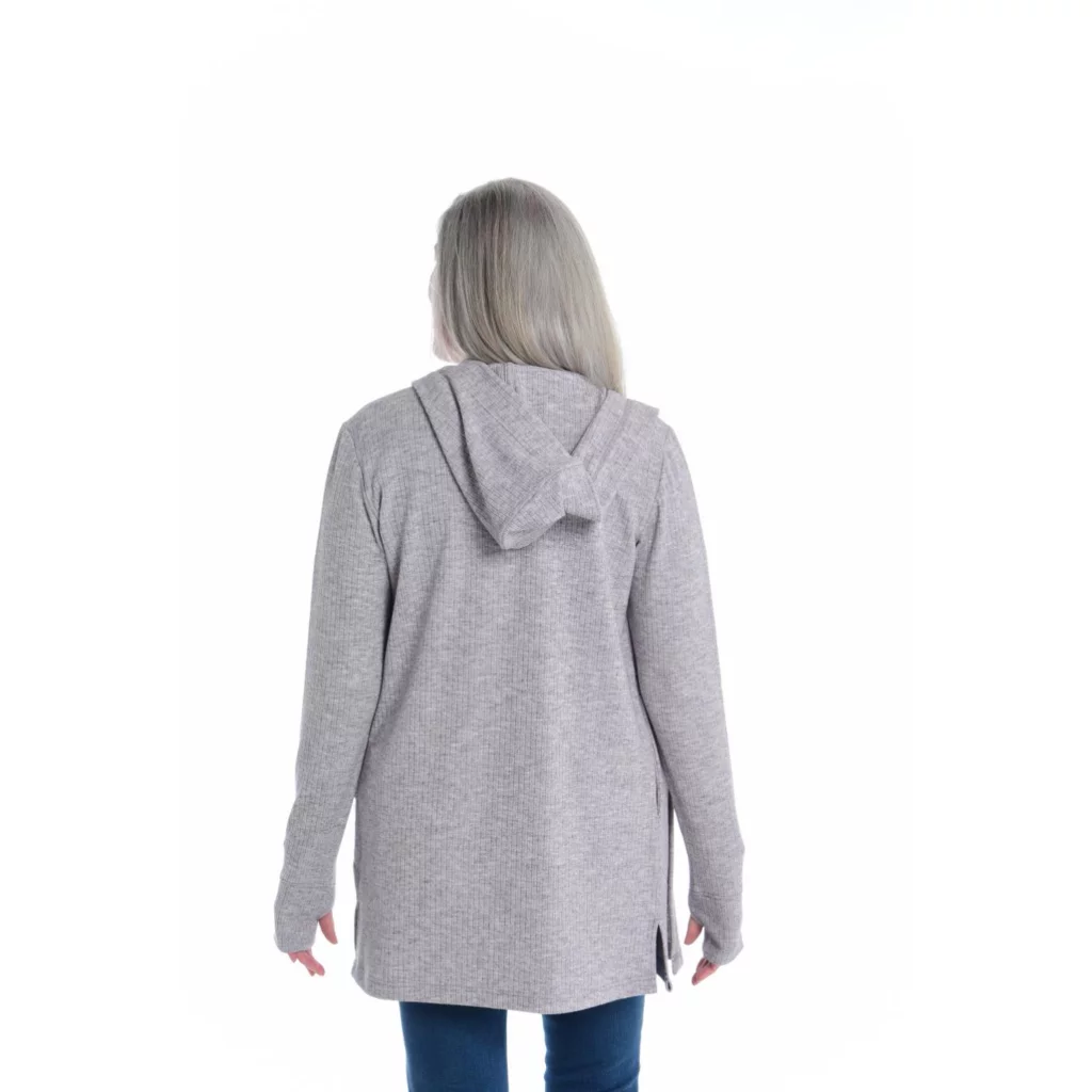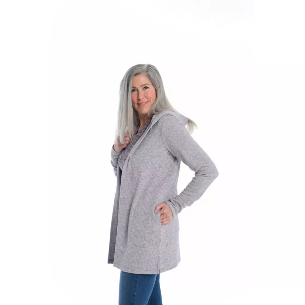 Meet your cozy essential: the Relaxed Restyled Hooded Rib Knit Cardigan. This laid-back cardigan boasts the perfect length, ideal for effortless layering over jeans or leggings. Crafted from a snug heather ribbed fabric, it’s your go-to for versatile, everyday comfort.