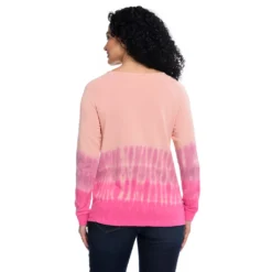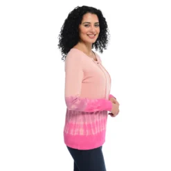 Give your casual days a style makeover. Dip-died ombre pattern is a fun twist on tie-dye with a lace up neckline for detail and to give your neck breathing room. Banded cuffs keep the sleeve in place during fast-paced outdoor jogs and relaxed work-from-home jobs.
