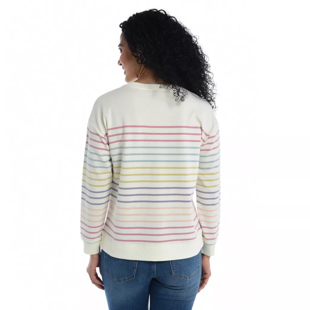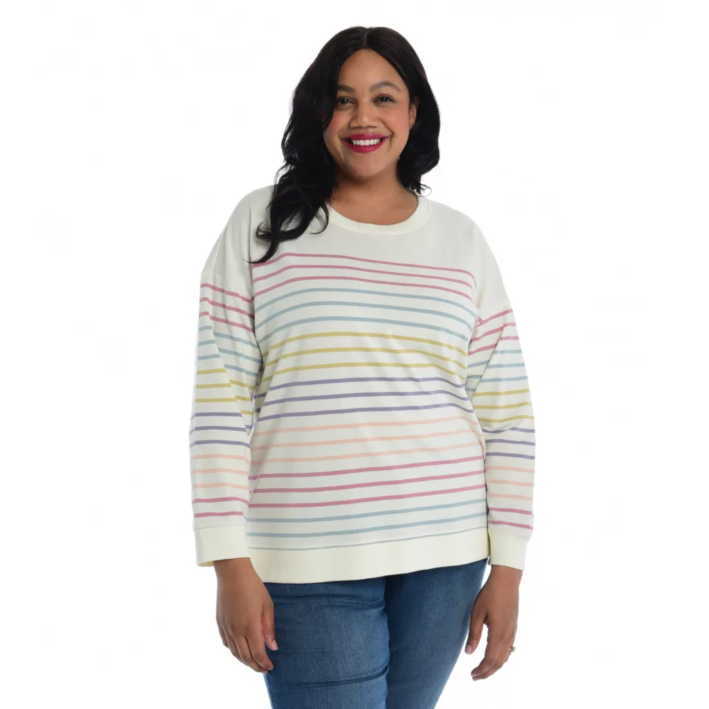 Unwind in style with our Relaxed Restyled Striped Crew Neck Sweatshirt. Embrace the comfort of long sleeves, while the timeless stripe pattern adds a touch of flair. Crafted from French terry fabric, this sweatshirt combines cozy warmth with a laid-back vibe.