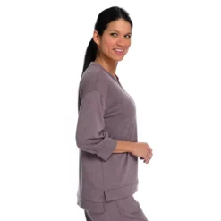 This quarter-zip top is a must-have for comfortable days. Super soft French Terry fabric keeps you cozy, with banded sleeves and side slits to keep it in place as you move. Zippered neckline lets you choose your most comfortable fit.