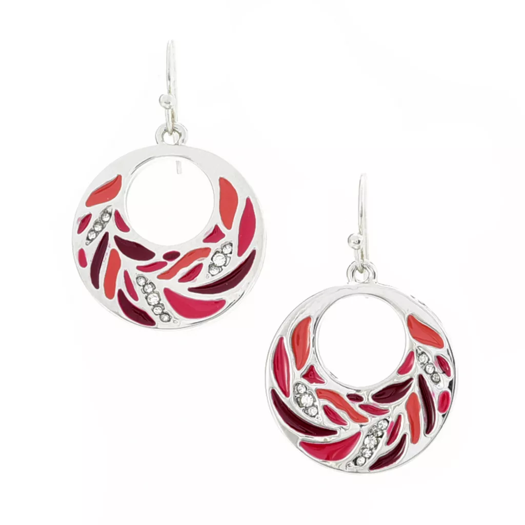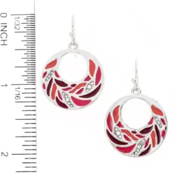 - Shades of a beautiful pomegranate color on this round pendant give this earring a monochromatic look with a bit of shimmer.