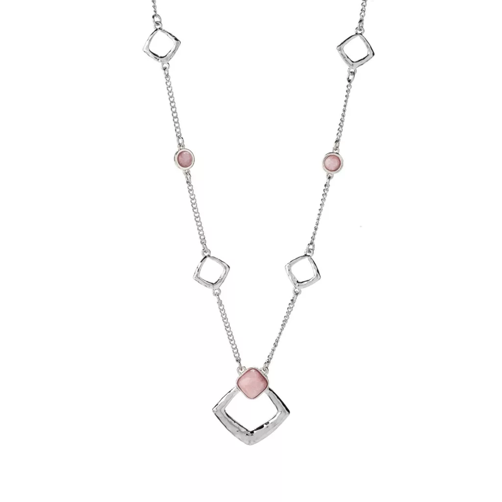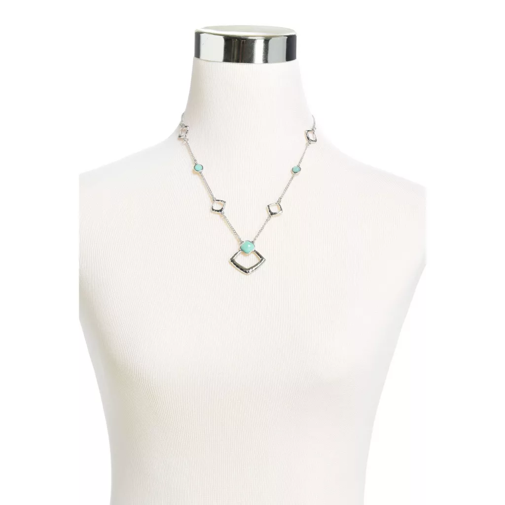 Semi-precious stones complimented by silver tie together this unique piece that’s truly “out of the box.” Match it with your favorite pieces or wear alone for an accessory that stands out. Our jewelry is hypoallergenic and nickel free for your peace of mind.