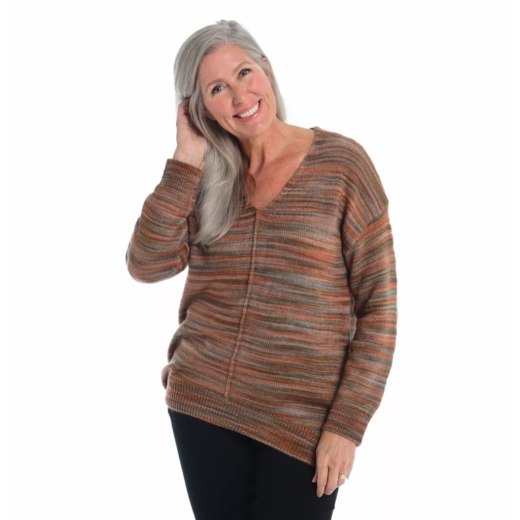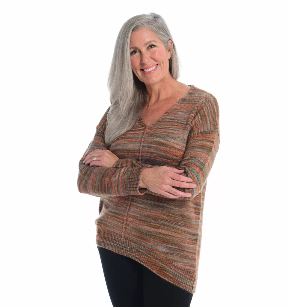 Experience sophistication with our Space Dyed V-Neck Tunic Sweater. The captivating space-dyed pattern meets the chic V-neck design, creating a modern yet timeless look. Crafted for comfort and style, its tunic length adds versatility. Elevate your outfit effortlessly, embodying confidence and elegance in one cozy piece, perfect for any occasion.